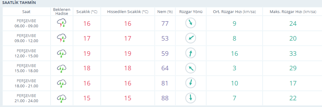 Meteoroloji Genel Müdürlüğü tarafından yapılan son değerlendirmelere göre, Antalya’da sağanak yağışlı bir gün beklenirken hissedilen en yüksek sıcaklık 19, en düşük 15 derece olacak. En düşük nem 53 en yüksek nem ise 88. Rüzgarın saatteki en yüksek hızı 33 km olarak tahmin ediliyor.