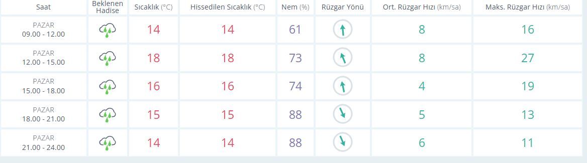 Meteoroloji Genel Müdürlüğü tarafından yapılan son değerlendirmelere göre, Antalya’da sağanak yağışlı bir gün beklenirken hissedilen en yüksek sıcaklık 17, en düşük 11 derece olacak. En düşük nem 61 en yüksek nem ise 88. Rüzgarın saatteki hızı 27 km olarak tahmin ediliyor.