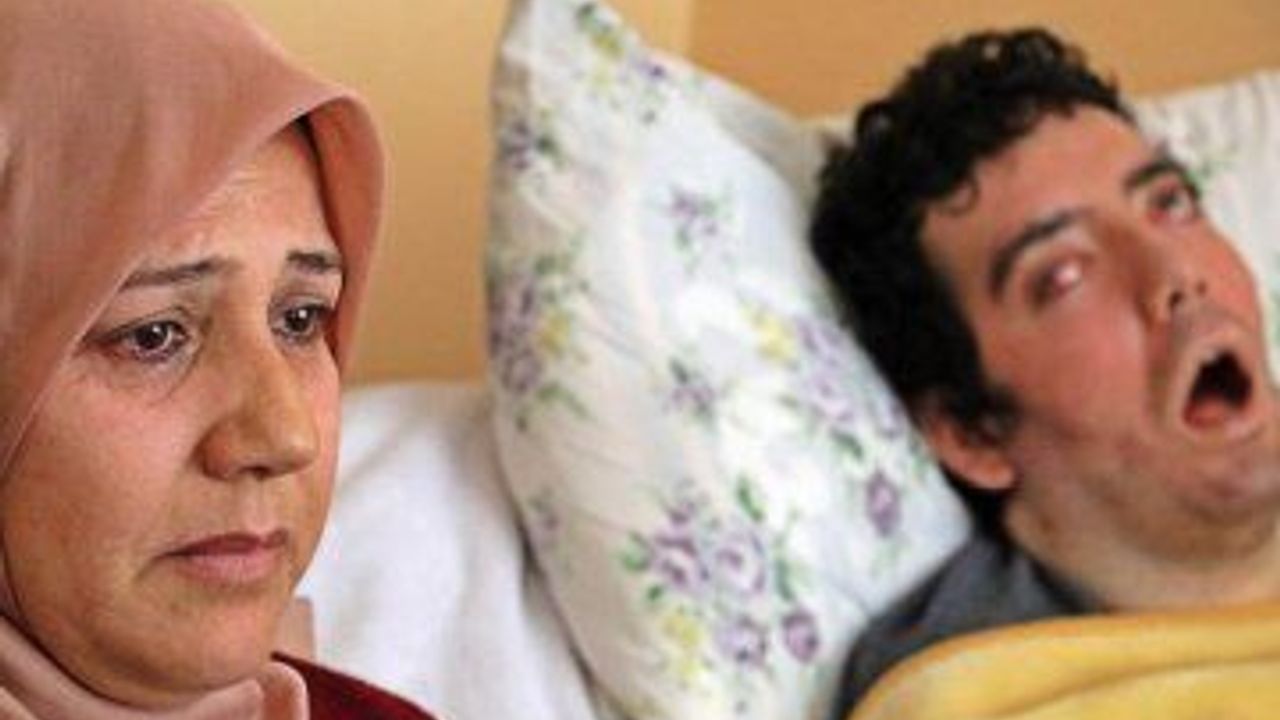 6 yıldır göz kapaklarını kırpamadığı için gözleri kan çanağına dönen genç adama, annesi Gülsüm Özçelik adeta bir bebek gibi bakıyor. Oğlunun gözlerinin bantla kapatabildiğini belirten Özçelik, 'Bantla kapatıyorum ara sıra. Çok kanlandığı zaman gözleri kuruyor. Çünkü hiç gözlerini açıp kapamıyor. Duyuyor, konuşamıyor. Sadece 'anne' diyor ama biz yine de anlaşıyoruz. Ben onu sevdiğim zaman o zaten hemen anlıyor ve anne diyor' dedi.
