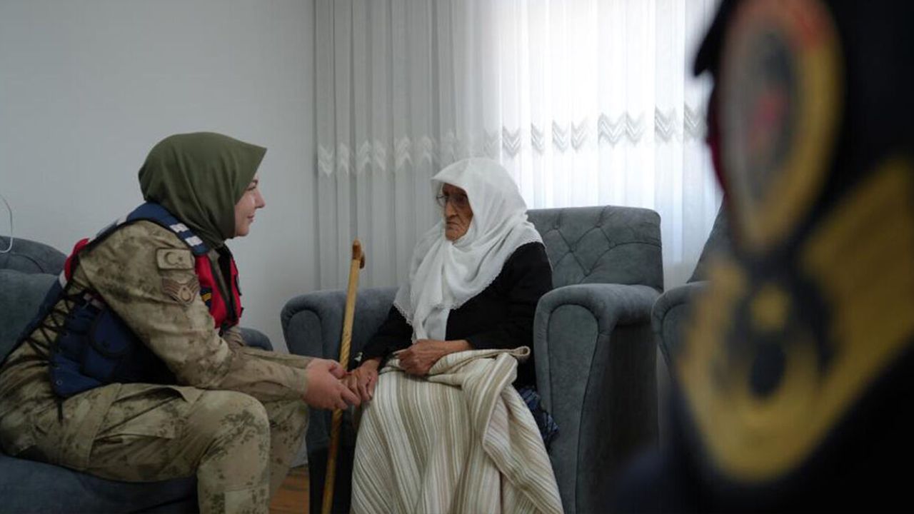 Ziyaretin sonunda jandarma personelini kapıya kadar uğurlayan Rabiye Nine, misafirlerini dualarla yolcu etti ve arkalarından uzun süre el salladı.