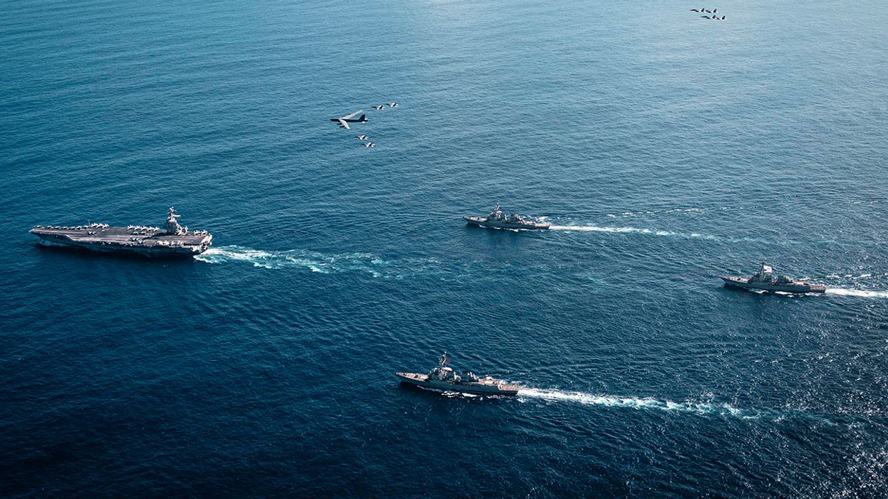 USS Gerald R. Ford liderliğindeki taarruz filosunun 4 binden fazla askeri personel ile düzinelerce taktik askeri uçağı taşıdığı kaydedilerek, "Kendi sınıfının ilk uçak gemisi olan USS Gerald R. Ford, gündüz-gece fark etmeksizin sabit kanatlı uçakların iniş ve kalkışına aynı anda imkan tanıyarak katıldığı operasyonları kesintisiz şekilde destekleyebilmektedir" hatırlatmasında bulunuldu. USS Gerald R. Ford uçak gemisinin yanı sıra, Arleigh Burke sınıfı güdümlü füze destroyerleri USS Bainbridge ve USS Mahan ile entegre hava ve füze savunma komuta gemisi USS Winston S. Churchill dahil çok sayıda askeri varlığın bölgeye konuşlandırıldığı vurgulandı.
