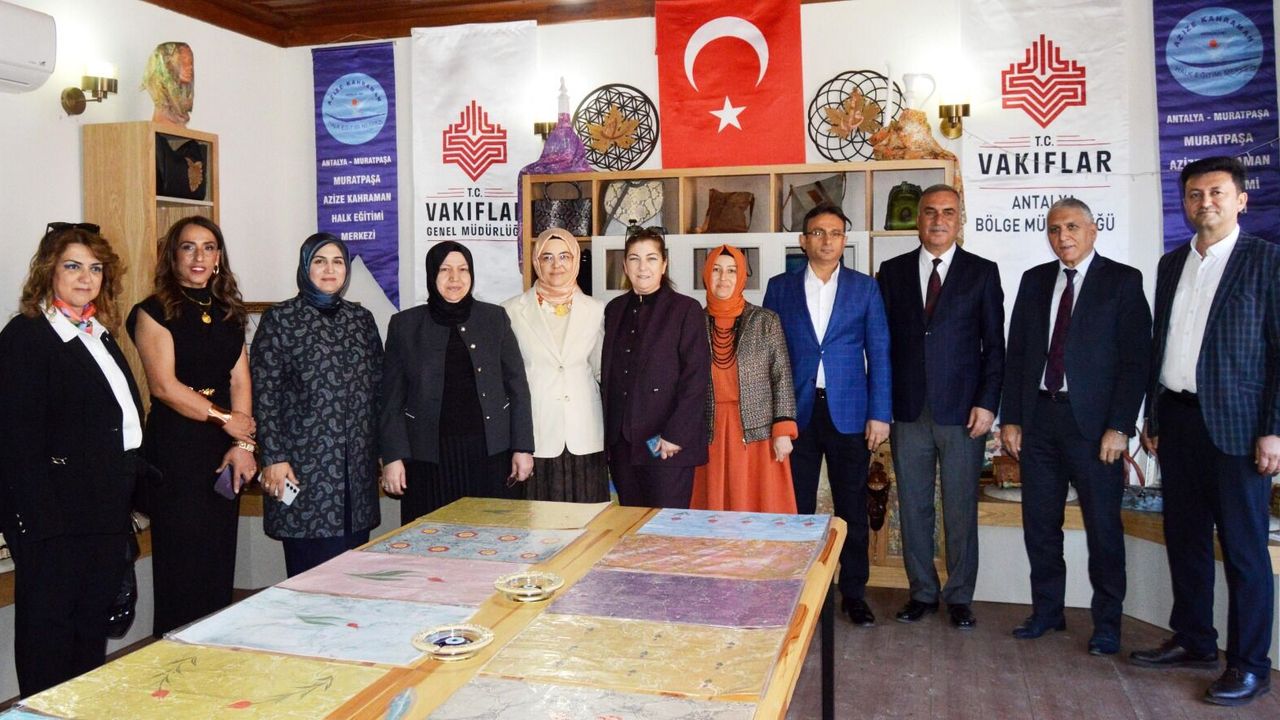 Tarihi Kaleiçi semtinde Vakıflar Bölge Müdürlüğü'ne ait binada gerçekleşen serginin kurdelesini Muratpaşa İlçe Milli Eğitim Müdürü Mustafa Coşkunsu, İl Milli Eğitim Şube Müdürü Mehmet Özbal, yazı işleri müdürü Mehmet Ali Çelebi, AKHEM Müdürü İnci Bacak, Çamlıbel Halk Eğitimi Merkezi Müdürü Canat Duru, Vakıflar Bölge Müdür Yardımcısı Mevlana Çakıral, Eğitim Bir-Sen Antalya Şube Başkanı Eyüp Bülent Miran, Muratpaşa İlçe Kaymakamı İhsan Kara'nın eşi Hülya Kara, İl Milli Eğitim Müdürü Mehmet Yasin Eriş'in eşi Şükran Eriş, Antalya Milletvekili Mustafa Köse'nin eşi Ünzile Köse birlikte kesti.