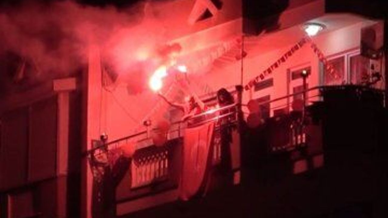 Antalya'nın Alanya ilçesinde 23 Nisan Ulusal Egemenlik ve Çocuk Bayramı etkinliği kapsamında binlerce vatandaş evlerinin balkonlarından İstiklal Marşı'nı okudu. Ellerinde Türk bayrakları sallayan ve meşaleler yakan kişiler renkli görüntüler oluşturdu<br />