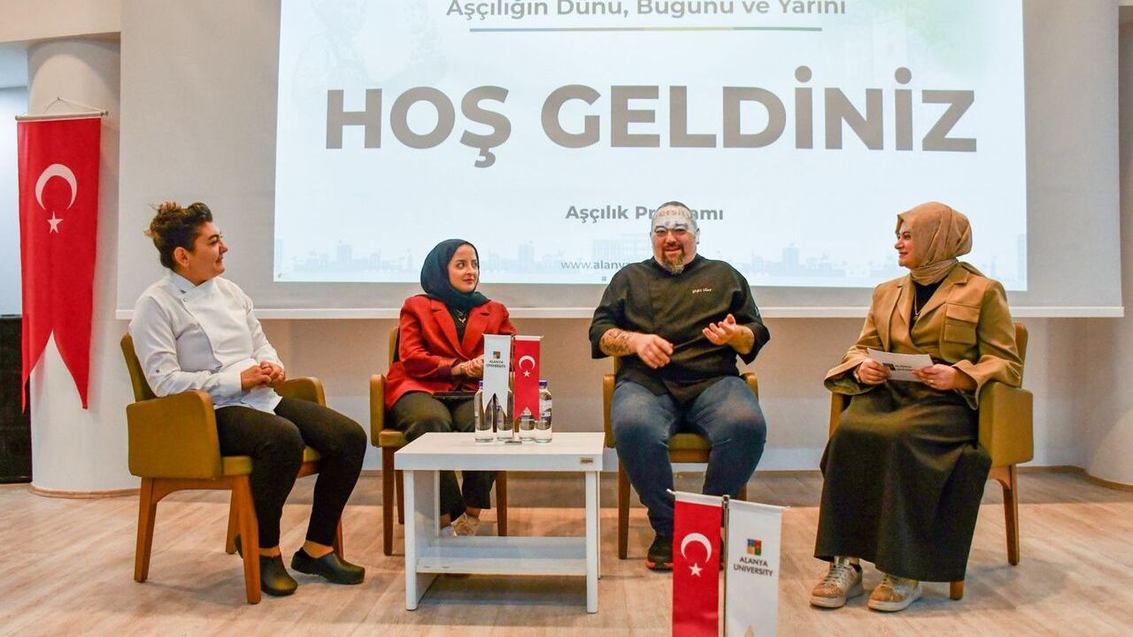 Panelin konuk şefleri Şefika Soybakış Taşkın, Yiğit Ulus ve Selma Biber ise sektöre dair merak edilen soruları yanıtlayarak kendi kariyer hikâyelerini ve mesleklerine dair deneyimlerini paylaştılar. Şefler, gastronomi alanında başarıya ulaşmanın sabır, özveri ve sürekli öğrenme gerektirdiğini vurguladı. Program sonunda Alanya Üniversitesi Meslek Yüksekokulu Müdürü Dr. Öğr. Üyesi Elif Gizem Yetkin, etkinliğe katkı sunan öğretim elemanlarına, öğrencilere ve konuk şeflere teşekkür ederek sertifikalarını takdim etti.