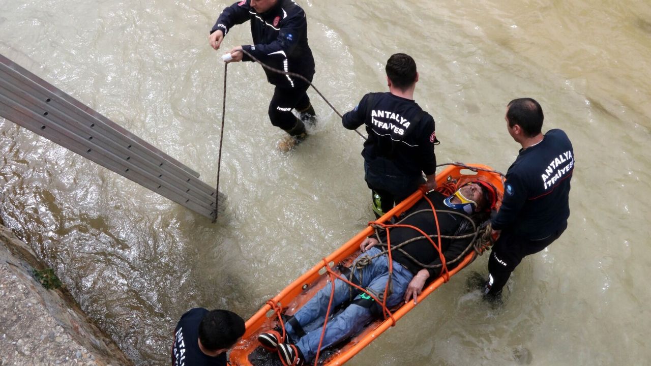İhbar üzerine bölgeye polis, sağlık ve itfaiye ekipleri sevk edildi. Ekipler merdiven yardımıyla çay içinde bulunan yaralıya ulaştı. Sedye yardımıyla çıkarılan yaralı, ambulansla Alanya Eğitim ve Araştırma Hastanesi’ne kaldırıldı.