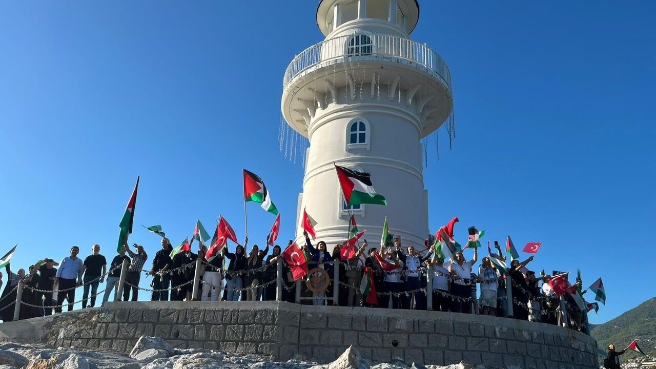 AK Parti Alanya İlçe Teşkilatı tarafından organize edilen ve çok sayıda sivil toplum kuruluşunun destek verdiği yürüyüşte vatandaşlar, ellerinde Türkiye ve Filistin bayraklarıyla Kızılkule önünde toplandı. "Kahrolsun İsrail", "Filistin halkı yalnız değildir" sloganları atan vatandaşlar, Kızılkule Meydanı'ndan deniz fenerine kadar yürüyüş gerçekleştirdi. Alanya açıklarında Türk ve Filistin bayraklarıyla donatılan çok sayıda tekne ve gemi de kıyı boyunca yürüyüşe eşlik etti. Teknelerdeki vatandaşlar bayrak sallayarak eyleme denizden destek verdi.