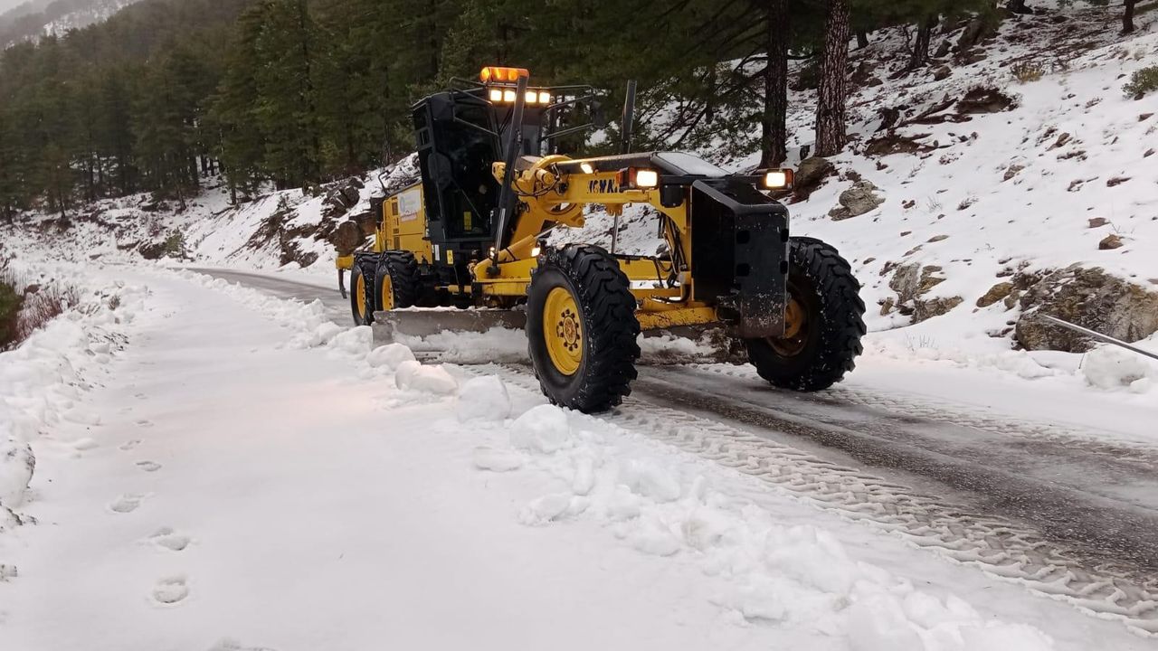 Antalya Büyükşehir Belediyesi Yol Yapım, Bakım ve Onarım Dairesi Başkanlığı Alanya ekipleri, hafta sonu başlayan ve yüksek kesimlerde etkisini hala sürdüren zorlu hava şartlarında ulaşımın aksamaması için yoğun bir şekilde çalışıyor.