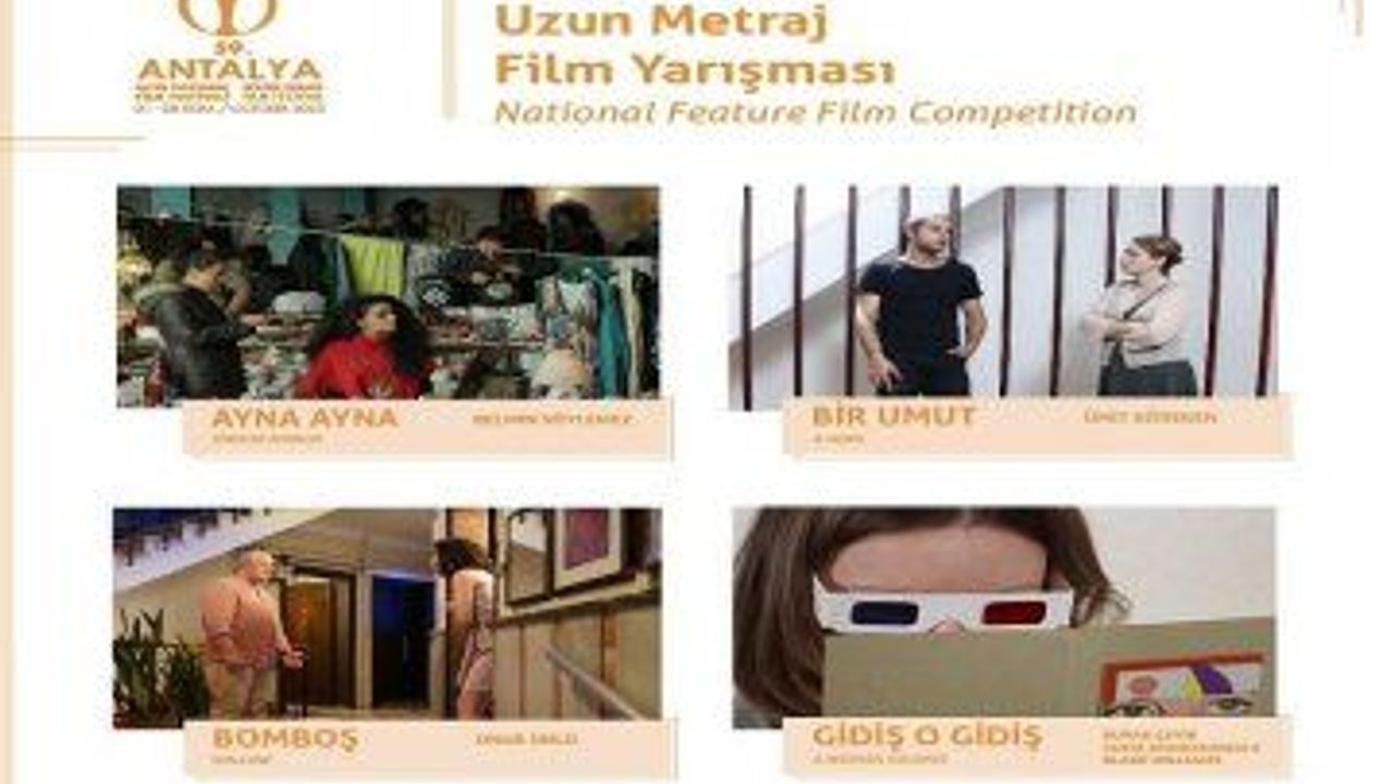 Antalya Büyükşehir Belediyesi'nin ev sahipliğinde, Kültür ve Turizm Bakanlığı'nın katkıları ile 1-8 Ekim tarihleri arasında düzenlenecek 59'uncu Antalya Altın Portakal Film Festivali'nde, Ulusal Uzun Metraj Film Yarışması'nda yarışacak 10 film belli oldu. Bu yarışmanın 14 kategorisinde, toplamda 840 bin TL tutarında ödül verilecek