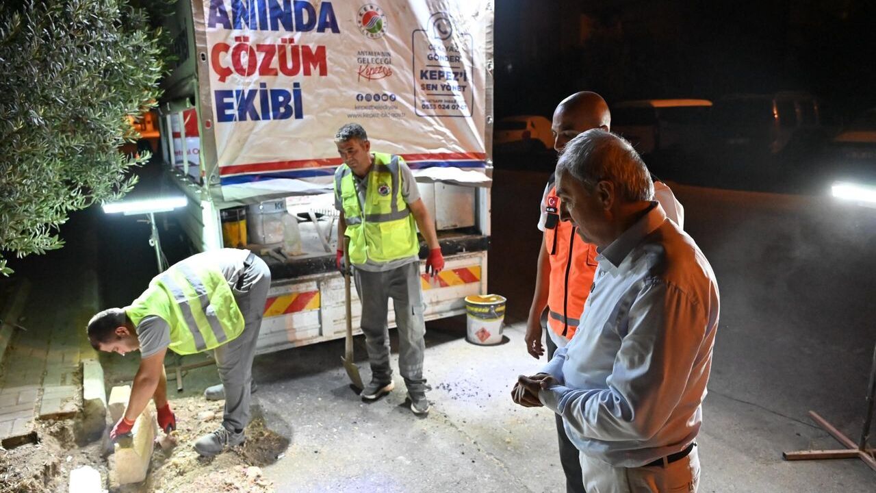 Kepez Belediye Başkanı Mesut Kocagöz, ekiplerin gece mesaisini Kuzeyyaka Mahallesi Aksu Caddesi’nde yerinde inceledi. Ekiplere kolaylıklar dileyerek, "Hepinizin emeğine sağlık. Atatürk’ün dediği gibi, ‘Vatan sevgisi, vatana yapılan en iyi hizmetle ölçülür" dedi. "Biliyorsunuz, biz halkımıza bir söz verdik" diyerek sözlerini sürdüren Başkan Kocagöz, "Kepez halkının her zaman yanındayız. Vatandaşlarımıza ‘Siz çekin, yazın, gönderin’ dedik. 7 gün 24 saat Kepez’imizin hizmetindeyiz" diye konuştu.