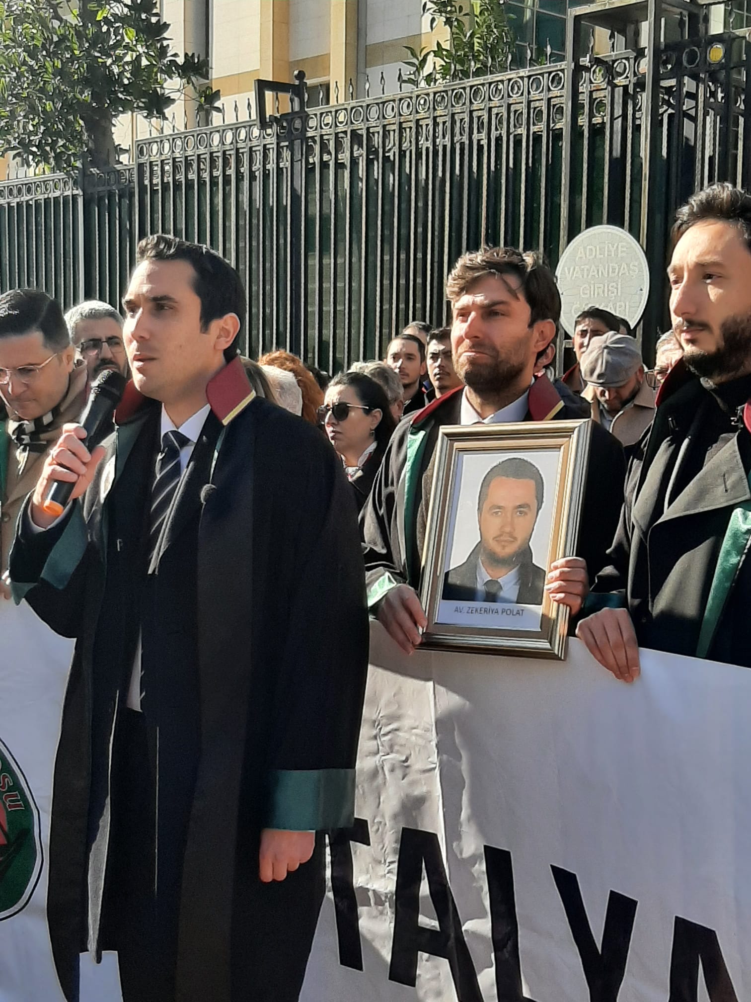 Geçtiğimiz günlerde mesleğini icra ettiği sırada uğradığı saldırı sonucu hayatını kaybeden Avukat Zekeriya Polat için Antalya Adliyesi önünde eylem düzenlendi. Antalya Barosu’nun organize ettiği eyleme çok sayıda avukat ve sivil toplum kuruluşu temsilcisi katıldı.