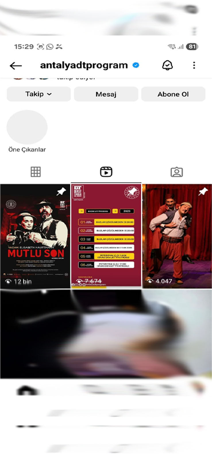 Antalya Devlet Tiyatrosu’nun resmi sosyal medya hesabı olan İnstagram sayfası hacklendi. Kurumun gösterim programlarını paylaştığı, daha önceki sahnelenen oyunlardan kesitlere yer verdiği sayfa da alakasız içeriklerin yer aldığını gören kullanıcılar kısa süreli bir şaşkınlık yaşadı.