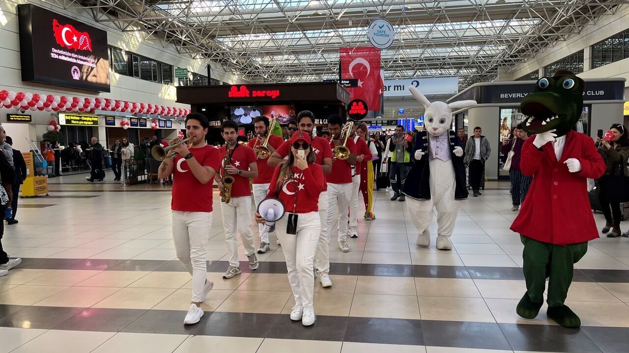 Antalya Havalimanı'nda giden ve gelen yolcu salonları başta olmak üzere tüm terminaller Atatürk posterleri, Türk bayrakları ve kırmızı beyaz balonlarla süslendi. Terminalin en yoğun saatlerinde bando, maskotlar ve balonbaz gösterisiyle başlayan 23 Nisan kutlamaları her yaştan misafirin geniş katılımıyla coşkuyla kutlandı.