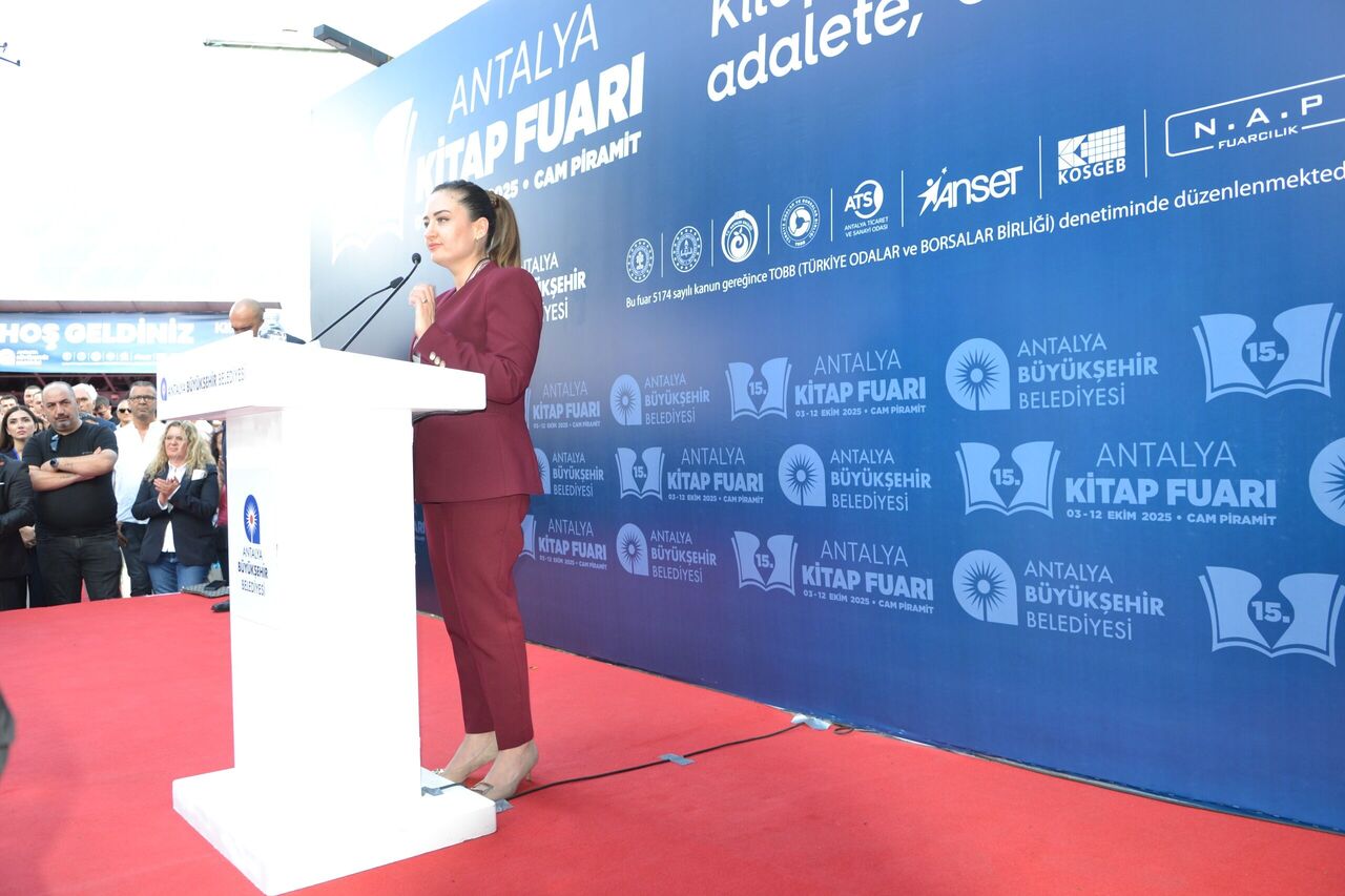 Programda konuşan Antalya Büyükşehir Belediyesi Başkan Vekili Büşra Özdemir, “Türkiye’de belediyeler tarafından gerçekleştirilen en büyük kitap fuarına, 15. Antalya Kitap Fuarımızın açılışına hepiniz hoş geldiniz, şeref verdiniz. Kitap fuarımız bundan on beş yıl önce çadırlarda başlayan ve bugün milyonu aşan ziyaretçi sayısıyla Antalya’nın kültür ve sanatın da kalbi olma yolundaki kararlılığının en önemli göstergesidir. Biz kültürün, sanatın ve kitapların gücüne inanıyoruz. Kitaplar cahil toplumların en büyük korkusudur. Aydınlığa doğru yürüyen toplumların meşalesidir. Çünkü okuyan bir toplum, sorgulayan, düşünen ve üreten bir toplumdur. O nedenle vatandaşlarımızı, özellikle de çocuklarımızı ve gençlerimizi kitapla, bilgiyle ve bilimle buluşturmayı en önemli görevlerimizden biri olarak görüyoruz. Bu vesileyle Antalya Kitap Fuarı’yla bizleri tanıştırarak bu güzel geleneği başlatan ve on beş yıldır aralıksız süren bu kültür şölenini bizlere armağan eden Sayın Muhittin Böcek Başkanımıza huzurlarınızda teşekkür etmek istiyorum” dedi.