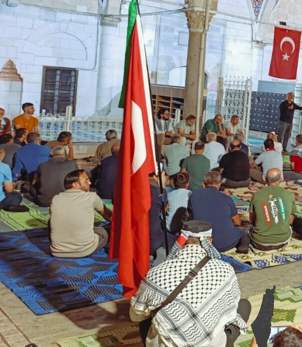 Gazze’deki insanlık dışı ambargoyu kırmak için yola çıkan Sumud Filosu Gazze karasularına yaklaştı. Ancak beklendiği gibi İsrail donanması filoyu durdurmak için çaba harcamaya devam ediyor. Yer yer saldırılarda da bulunan İsrail donanmasına karşı, içlerinde 58 Türk vatandaşının da olduğu filoya destek için Antalya’da bulunan Muratpaşa Camii’nde bir etkinlik düzenlendi. Antalya Kudüs Platformu’nun düzenlediği etkinliğe Nazif Fethi Yalçınkaya başta olmak üzere çok sayıda vatandaş katıldı.