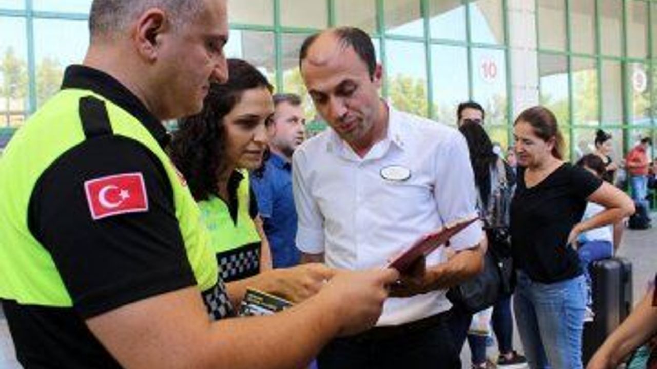 Ardından trafik şube ve denetleme ekipleri, otogardaki otobüslerin içine girerek, yolculara çalışmaları hakkında bilgi verdi. Trafik polisleri, yolculara şoförün emniyet kemerini takmaması, aşırı hız yapması ve araç kullanırken cep telefonu ile konuşması durumunda polis ekiplerine rahatlıkla haber vermeleri gerektiğini söyledi. Polis ekiplerinin bayram öncesi uyarılarını dikkate alan yolcular, bu bilgilendirmeden mutlu olduklarını belirtti. (DHA)