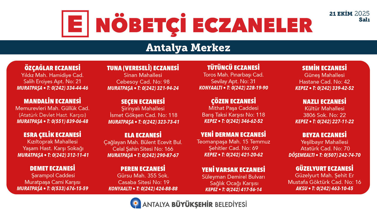 İşte Antalya'nın merkez ilçelerinde bu gece nöbetçi olacak eczaneler;