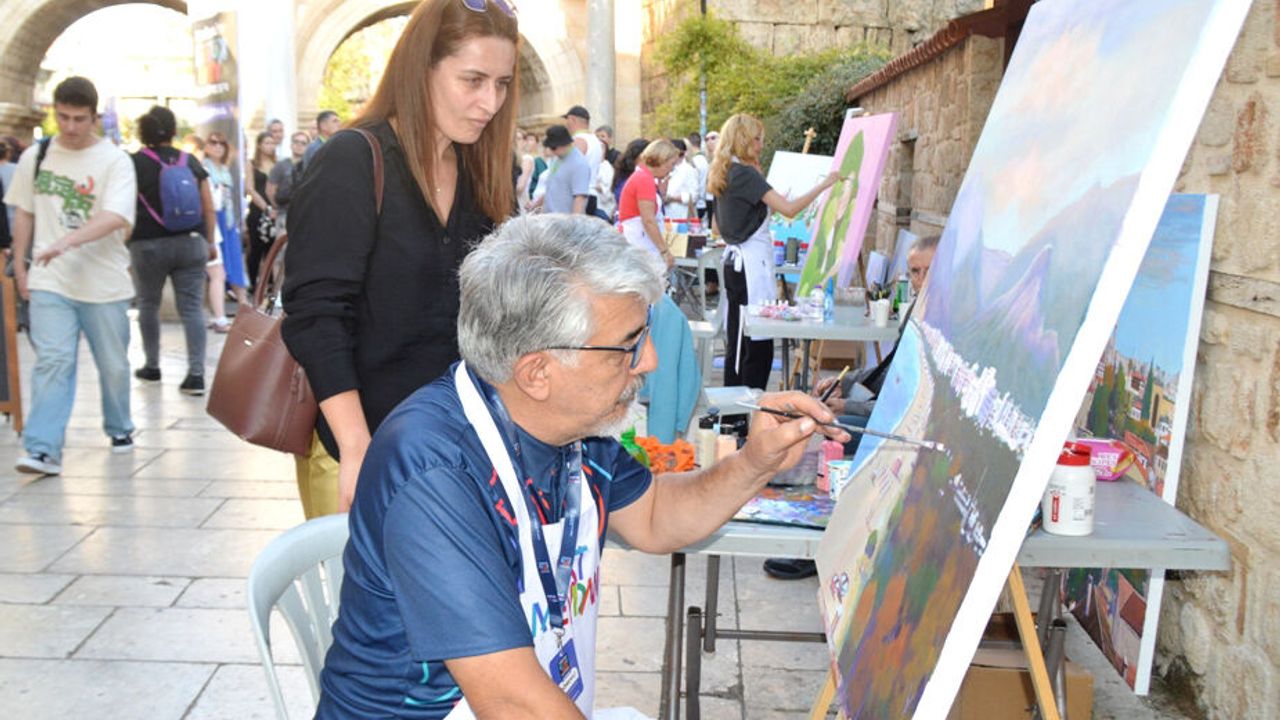 Kültür Yolu Festivali'ne katkıda bulunan 'Art Meydan' adlı sanatçılar topluğu da proje sorumlusu Mehmet Ali Doğa'nın organizasyonuyla tarihi Hadrianus Kapısı önünde oluşturdukları stantlarda fırça ve boya paletleriyle canlı performans sergileyerek Kaleiçi'nin girişini resimlerle renklendirdi.