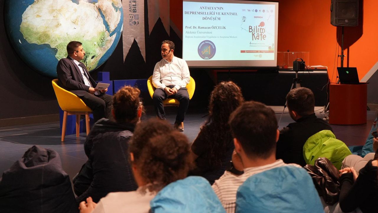Depremin hayatın bir parçası olduğuna dikkati çekmek ve kamuoyunda doğru bilinen yanlışları bilimsel verilerle ele almak amacıyla Antalya’da ‘Deprem gerçeğiyle yüzleşmeye hazır mıyız?’ başlığıyla Bilim Kafe etkinliği düzenlendi. Akdeniz Üniversitesi Bilim İletişimi Ofisi ile Bilim İletişimi Topluluğu tarafından Antalya Bilim Merkezi’nde gerçekleştirilen etkinlikte, deprem konusu tüm yönleriyle ele alındı. Etkinliğin konuşmacılığını Prof. Dr. Ramazan Özçelik üstlenirken, moderatörlüğü Bilim İletişimi Topluluğu Başkanı Emir Uras Ulutaş yaptı. Etkinliğin başında, 6 Şubat Kahramanmaraş merkezli depremlerde hayatını kaybedenler anıldı.