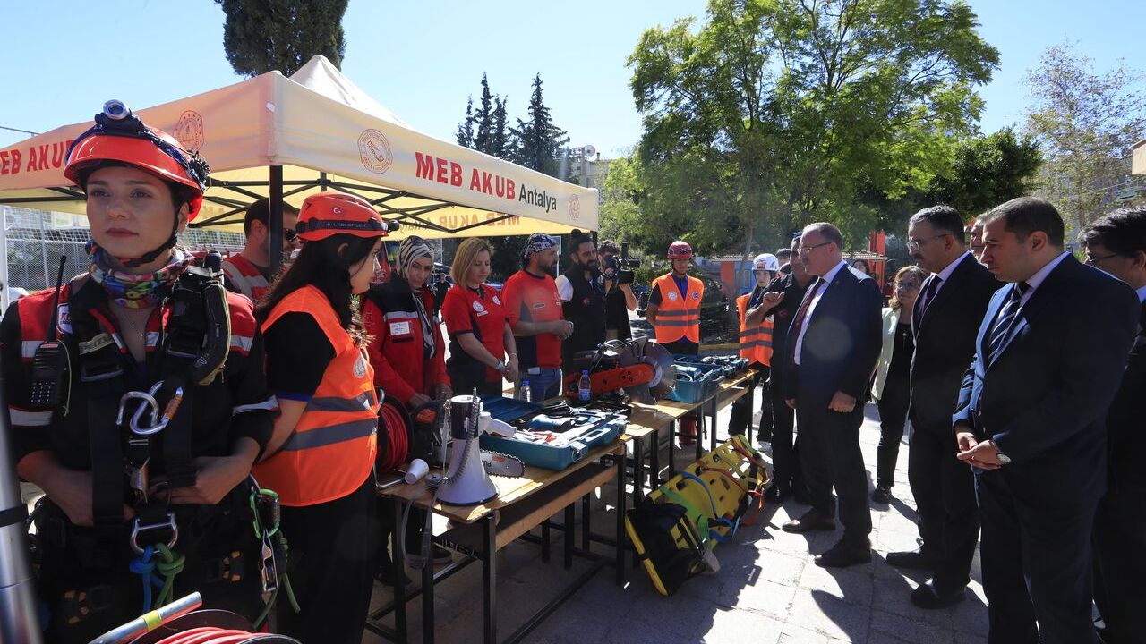 Ekim ayı "Afetler ve Dayanıklılık Ayı" etkinlikleri kapsamında, Antalya’da tüm okullarda eş zamanlı "deprem tahliye tatbikatı" yapıldı. Kepez Hızır Reis Mesleki ve Teknik Anadolu Lisesi’nde düzenlenen tatbikata Antalya İl Milli Eğitim Müdürü Mehmet Yasin Eriş’te katıldı. Eriş, Tatbikat öncesi öğrencilerle birlikte Antalya Büyükşehir Belediyesi İtfaiye Daire Başkanlığı, Jandarma Arama Kurtarma (JAK), Polis Arama Kurtarma (PAK), UMKE, AFAD, Kırmızı Kasklılar Arama Kurtarma ve STK’ların arama kurtarma birimleri tarafından oluşturulan stantları gezdi. Öğrenciler, deprem başta olmak üzere doğal afetlerde arama kurtarma görevlerinde kullanılan ekipmanlar hakkında görevlilerden bilgi aldı.