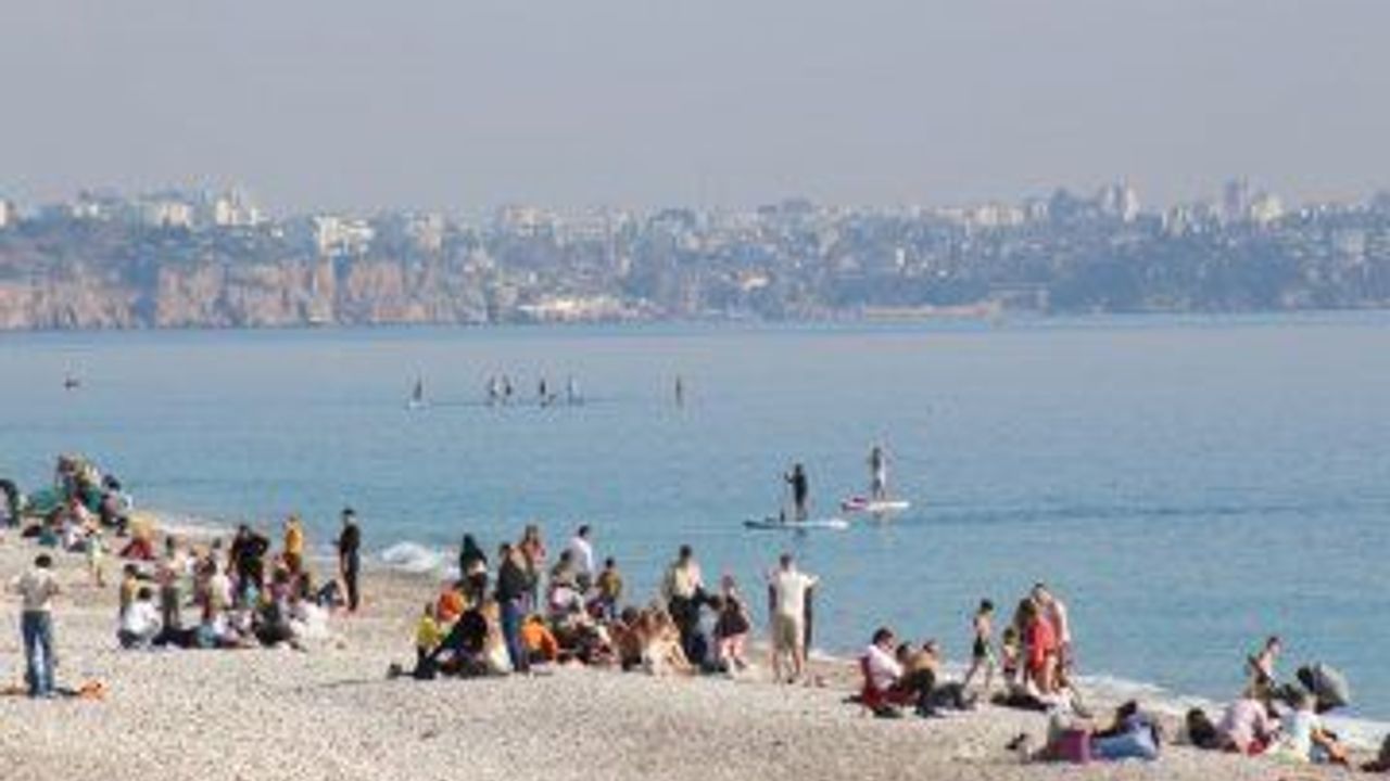 Antalya'da güzel havayı fırsat bilenler sahile akın ettı