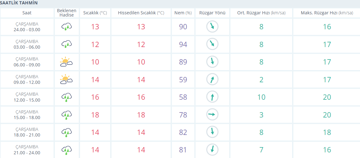 Meteoroloji Genel Müdürlüğü tarafından yapılan son değerlendirmelere göre, Antalya’da sağanak yağışlı bir gün beklenirken hissedilen en yüksek sıcaklık 18, en düşük 10 derece olacak. En düşük nem 58 en yüksek nem ise 94. Rüzgarın saatteki en yüksek hızı 20 km olarak tahmin ediliyor.