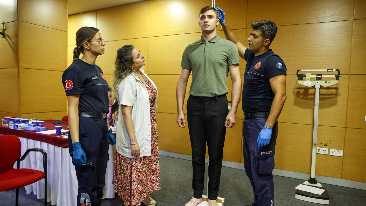 Antalya Büyükşehir Belediyesi’nin itfaiye kadrosunu güçlendirmek amacıyla 45 itfaiye eri alımı için başvurular başladı. Başvuru şartlarını taşıyan adayların sözlü ve uygulamalı sınava öncesinde sağlık personeli gözetiminde boy ve kilo ölçümü yapıldı