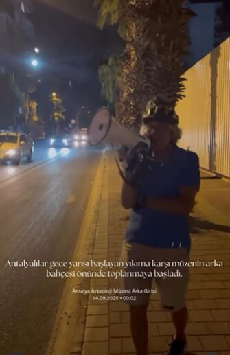 Gece saatlerinde eline aldığı megafonlar sokak sokak gezerek Müze’nin yıkımına başlandığını duyurmaya çalışan Profesör Doktor Hilmi Uysal, “ Antalya, müzeni yıkıyorlar. Yıkıma başladılar. Depreme dayanıksız olduğu için bir katlı binayı yıkıyorlar. Hemen yanlarında bulunan 8- 10 katlı binalar depreme dayanıklı iken bir katlı bina depreme dayanıksız diye yıkılıyor. Maalesef ses soluk çıkmıyor” diyerek isyanını dile getirdi.