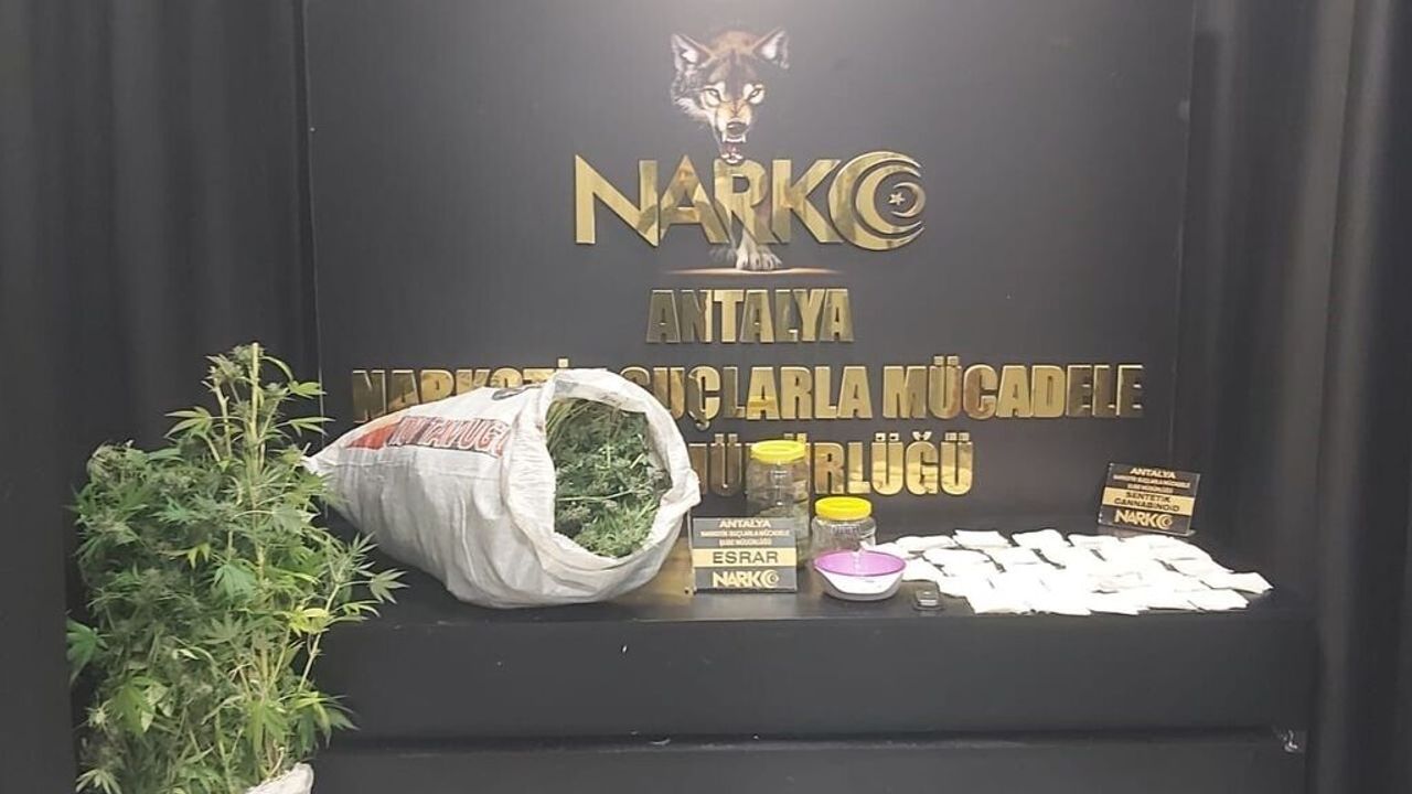 Antalya'da polisin bir adrese düzenlendiği operasyonda 67 kök esrar yapımında kullanılan kenevir bitkisi, 7 kilogram esrar ve 48 bin 510 kullanımlık A4 kağıdına emdirilmiş sentetik kannabinoid ele geçirilirken, 2 kişi gözaltına alındı.
