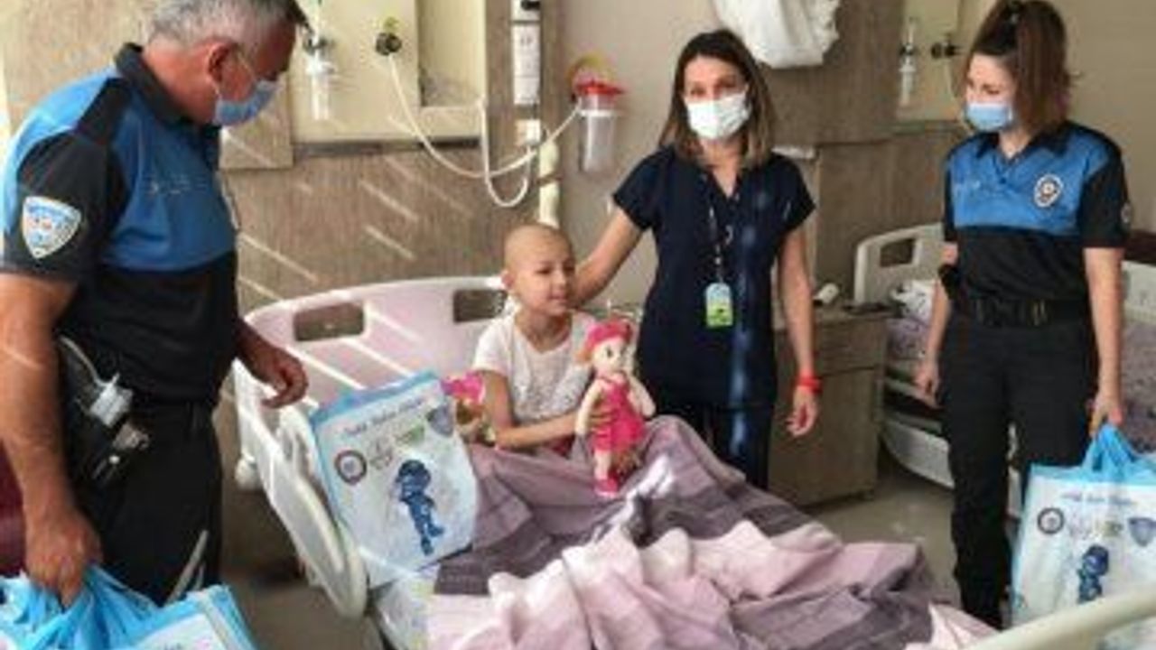 Antalya'da polisler, lösemi tedavisi gören çocukları ziyaret etti
