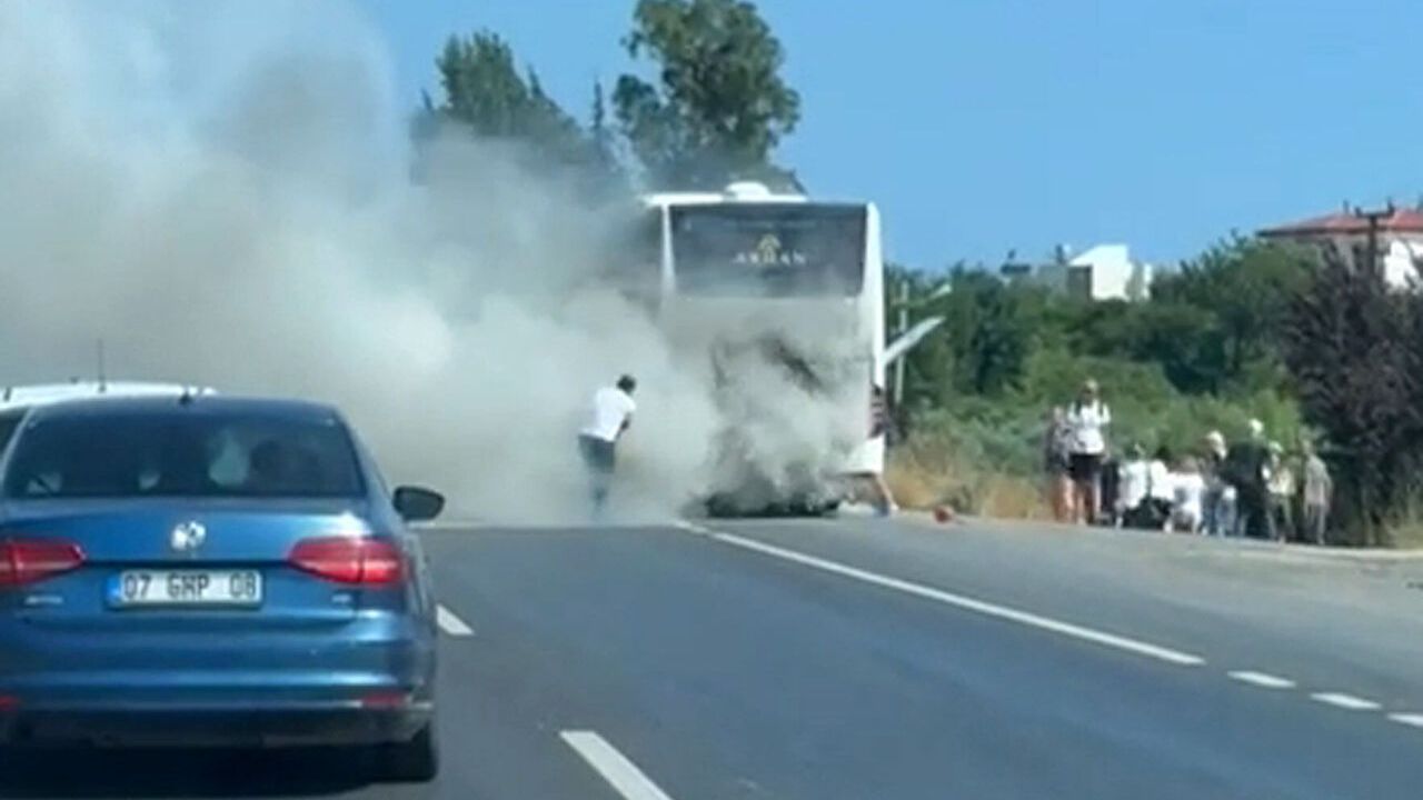 Antalya Havalimanı'ndan aldığı Polonyalı 43 turisti Alanya'daki otellerine götürmek üzere yola çıkan Yunus Bişirik'in kullandığı 07 GFU 03 plakalı tur otobüsü, D400 kara yolunun Manavgat yakınlarında motor bölümünden alev alarak yanmaya başladı.