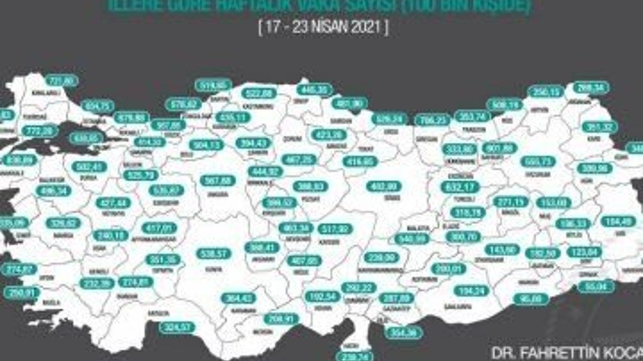 Burdur'da ise 100 bin kişide görülen vaka sayısı bir önceki hafta 258,71 iken 17-23 Nisan arasında 274,81'e düştü. (İHA)