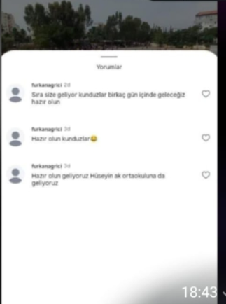 Bir sosyal medya platformunda yapılan yorumlarda ise, 'hazır olun, geliyoruz, Hüseyin Ak Ortaokulu'na da geliyoruz', 'hazır olun kunduzlar' gibi ifadeler yer aldı.