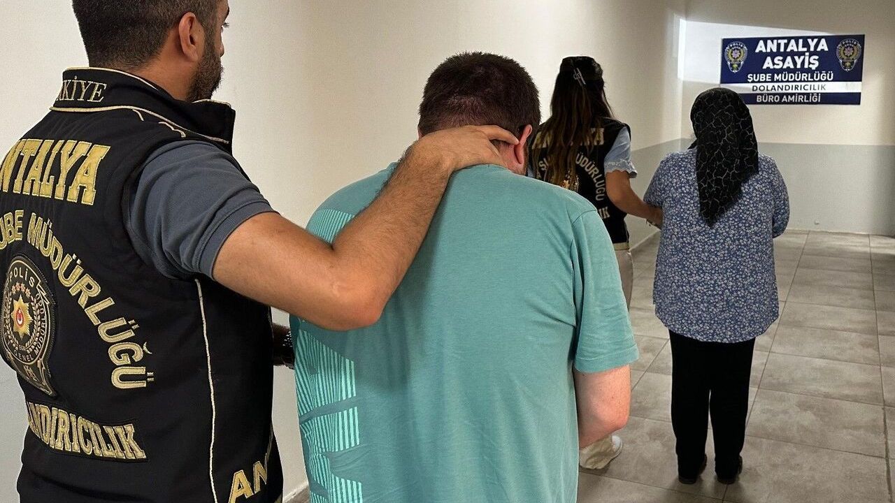 Antalya İl Emniyet Müdürlüğü Asayiş Şube Müdürlüğü ekiplerince yürütülen çalışmalar kapsamında, 5 ayrı kişiden vize çıkarma ve tatil turu satma vaadiyle toplam 651 bin lira aldıkları belirlenen V.Ö. ve S.Ü. isimli şüpheliler yakalandı. "Nitelikli Dolandırıcılık" suçundan adli makamlara sevk edilen şüphelilerden biri çıkarıldığı mahkemece tutuklandı.