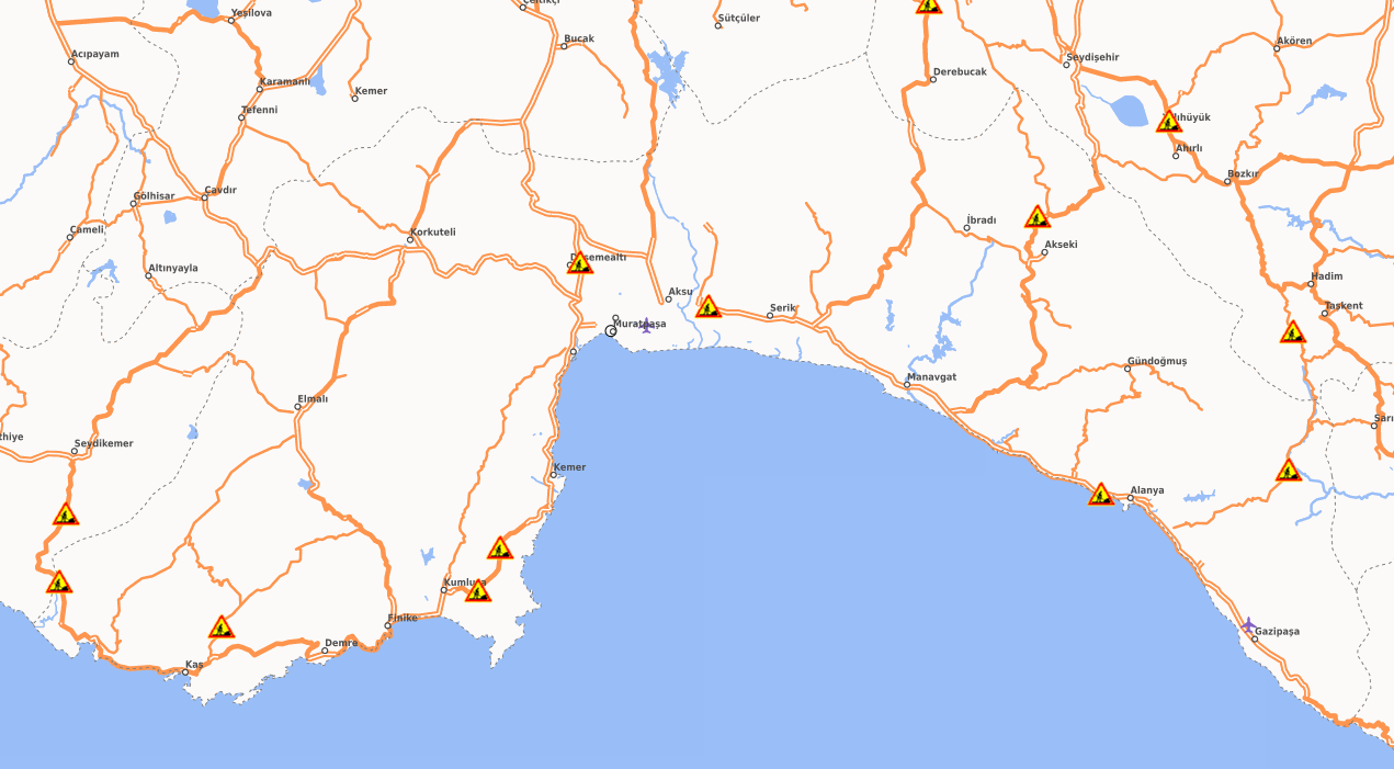 Antalya genelinde ulaşımı etkileyen yol yapım, bakım ve doğal olaylar (heyelan/oturma) nedeniyle birçok güzergahta trafik akışı yeniden düzenlendi. Antalya, Manavgat, Alanya, Kaş, Elmalı, Kumluca, Kemer ve Akseki hatlarındaki tünel ile kavşak çalışmaları nedeniyle ulaşım yer yer tek şeritten veya kontrollü olarak sağlanıyor. Sürücülerin trafik işaretlerine uymaları ve belirtilen kilometre aralıklarında hızlarını düşürmeleri önem arz ediyor.