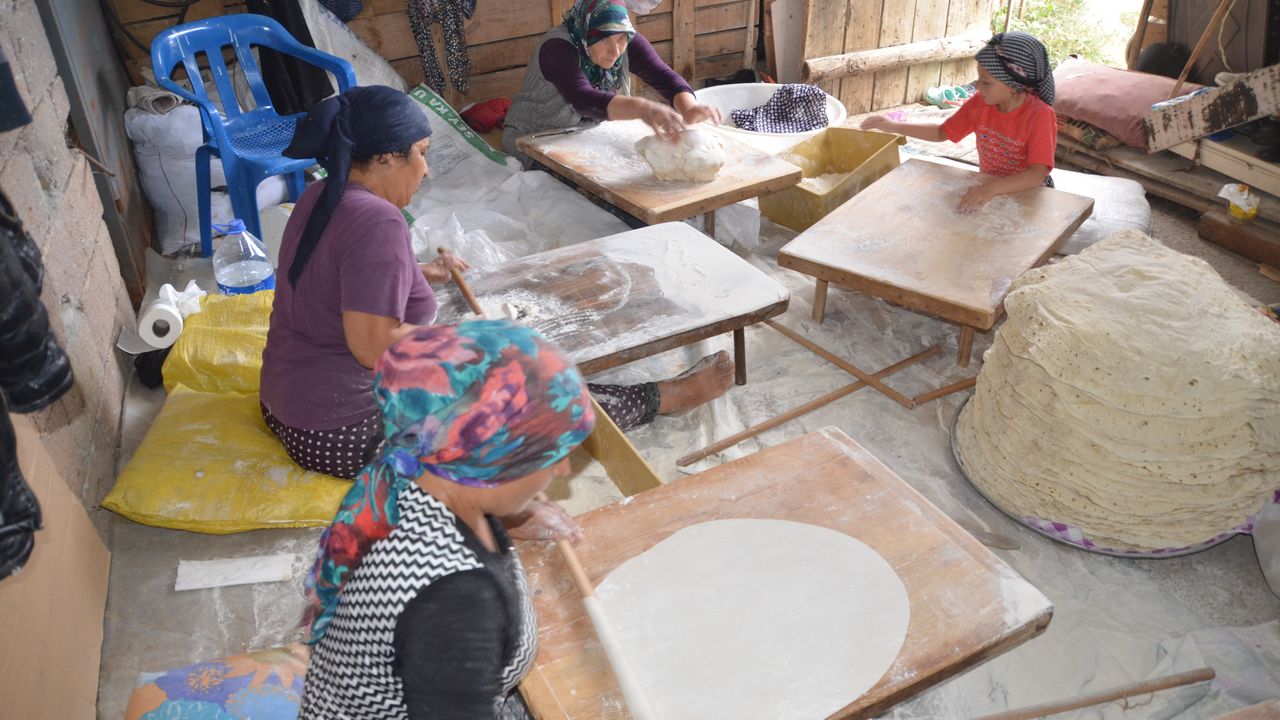 Ekmek yapımının tek başına mümkün olmadığını ifade eden Yörük, "Sabah erken başlarız, akşama kadar sürer. Bu iş mutlaka yardımlaşarak yapılır" dedi.