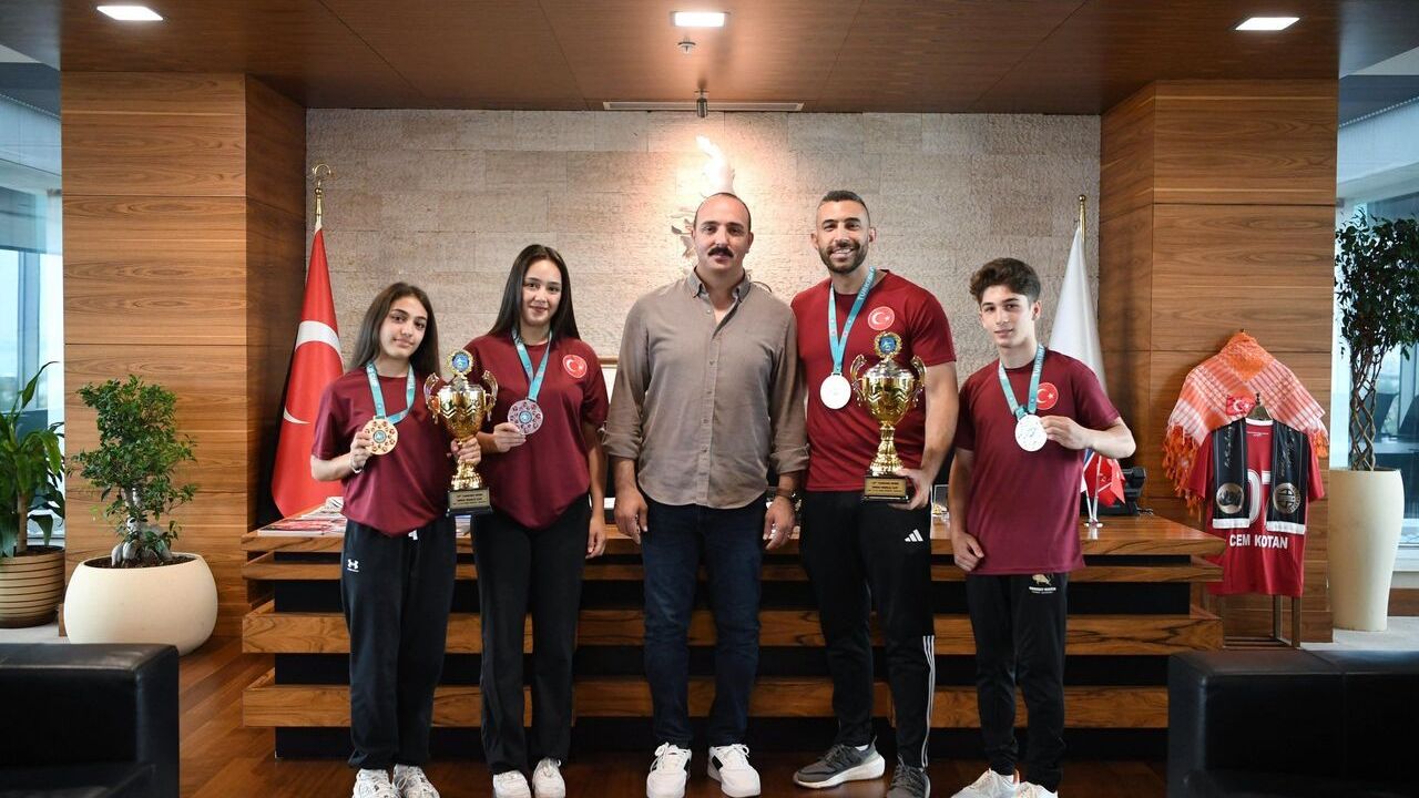 Dünya çapında elde ettikleri başarıların ardından Antalyalı sporcular, Konyaaltı Belediye Başkanı Cem Kotan’ı makamında ziyaret etti. Sporcular, kupa ve madalyalarıyla birlikte katıldıkları ziyarette, Başkan Kotan’dan övgü dolu sözler aldı.
