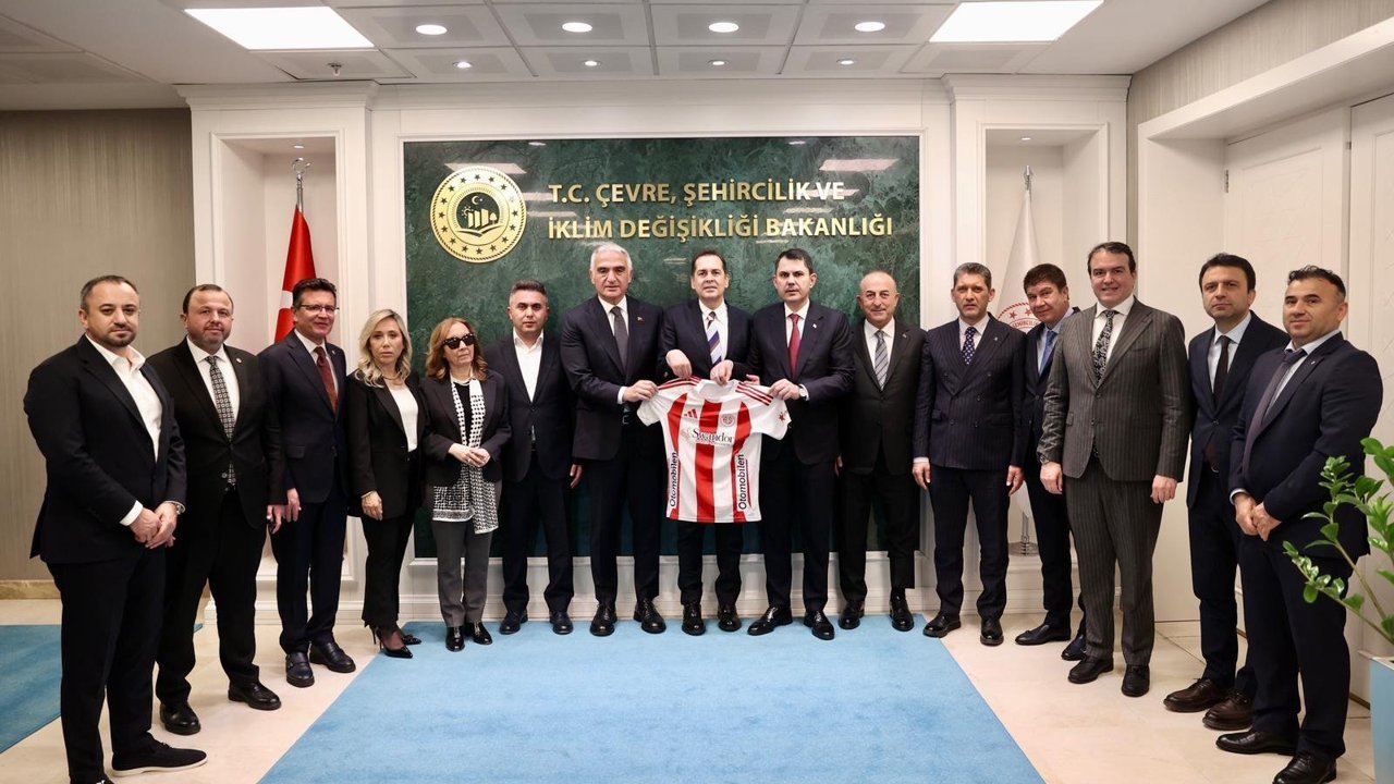 Antalyaspor’a kaynak yaratacak projeler için Ankara’ya çıkarma yapan Antalyaspor heyetinde Antalyaspor Başkanı Rıza Perçin’in yanı sıra Kulüp Başkanı Mustafa Ergün, Antalyaspor Kulübü yönetim kurulu üyesi Sami Güral yer aldı. Ayrıca Kırmızı beyazlı yöneticilere Antalya milletvekili ve Dışişleri Bakanı eski Bakanı Mevlüt Çavuşoğlu, Büyükşehir Belediyesi eski başkanı Menderes Türel, Ak Parti İl Başkanı Ali Çetin, Ak Parti Milletvekilleri Mustafa Köse, Ethem Taş, Atay Uslu, Tuba Vural Çokal ve Serap Yazıcı Özbudun eşlik etti. Antalyaspor heyeti Ankara’da Çevre ve Şehircilik Bakanı Murat Kurum ve Kültür ve Turizm Bakanı Mehmet Nuri Ersoy ile görüşme gerçekleştirdi ve Antalyaspor forması hediye etti.