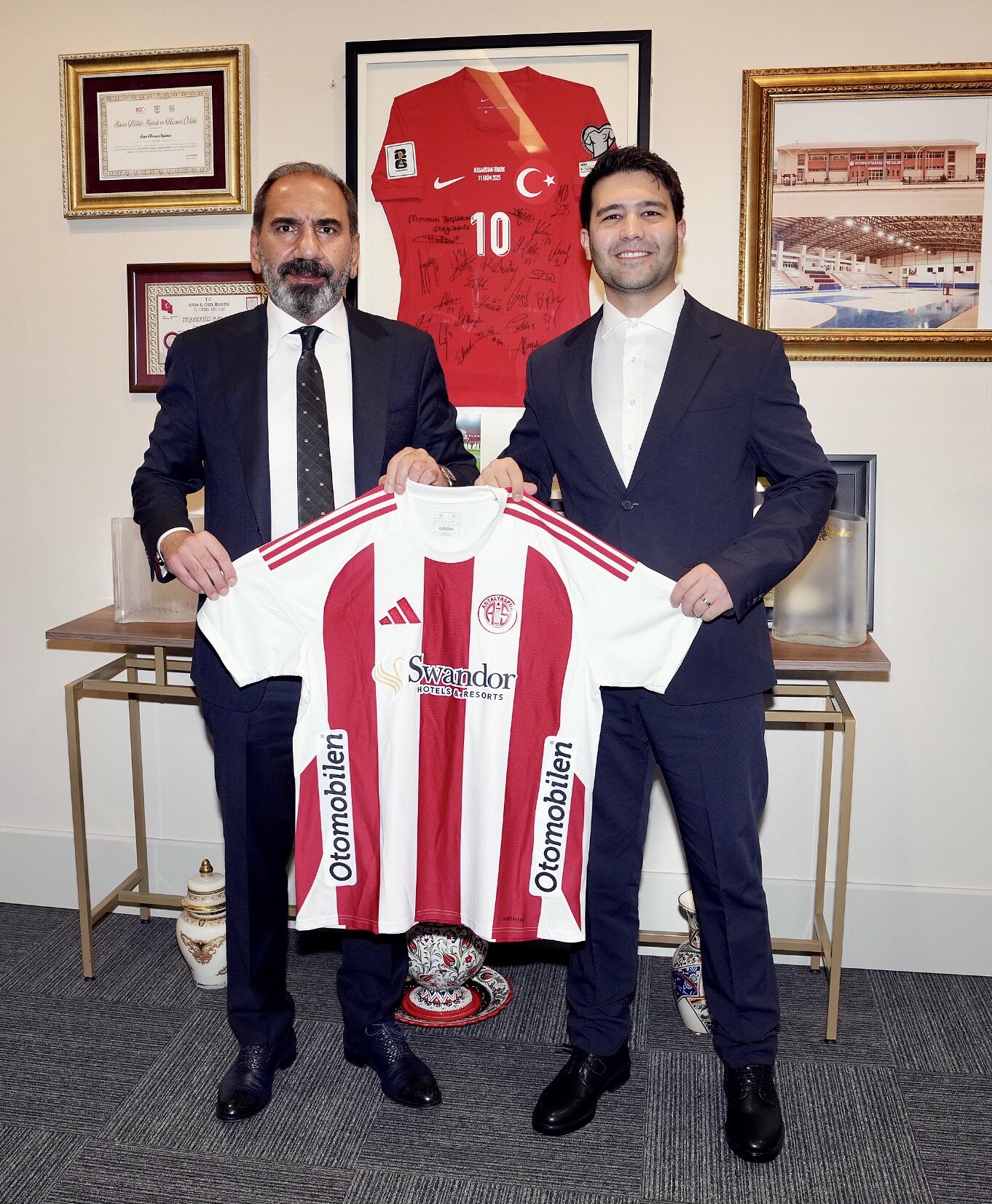 Görüşmenin sonunda Nebi Erdemsoy, Mecnun Otyakmaz’a üzerinde isminin yazılı olduğu Antalyaspor forması takdim ederek nazik ev sahipliğinden dolayı teşekkür etti. Ziyaretin, kulüp–federasyon iş birliğinin güçlenmesine katkı sağlayacağı belirtildi.