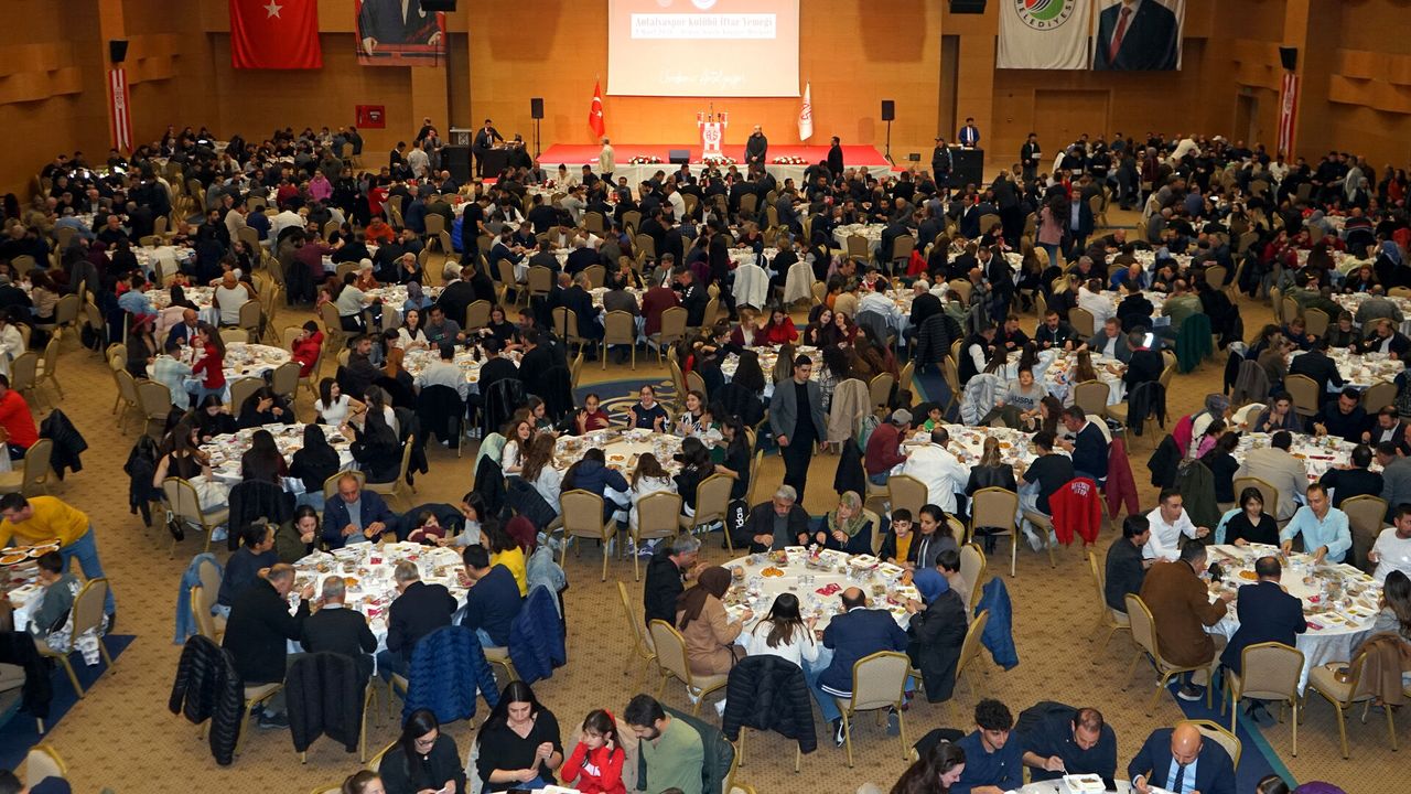 Antalyaspor Kulübü'nün iftar programı, Mimar Sinan Kongre Merkezi'nde gerçekleştirildi. İftara Hulusi Şahin başta olmak üzere çok sayıda siyasi, oda temsilcisi, STK yöneticisi ile camianın önde gelen isimleri ve taraftarlar katıldı.