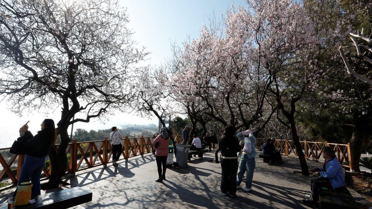 Türkiye'nin birçok noktasında kar ve soğuk uyarısı yapılırken Antalya yazdan kalma günleri yaşıyor. Çiçek açan ağaçlar görsel şölen oluştururken sıcak havayı fırsat bilen vatandaşlar sahilleri doldurdu