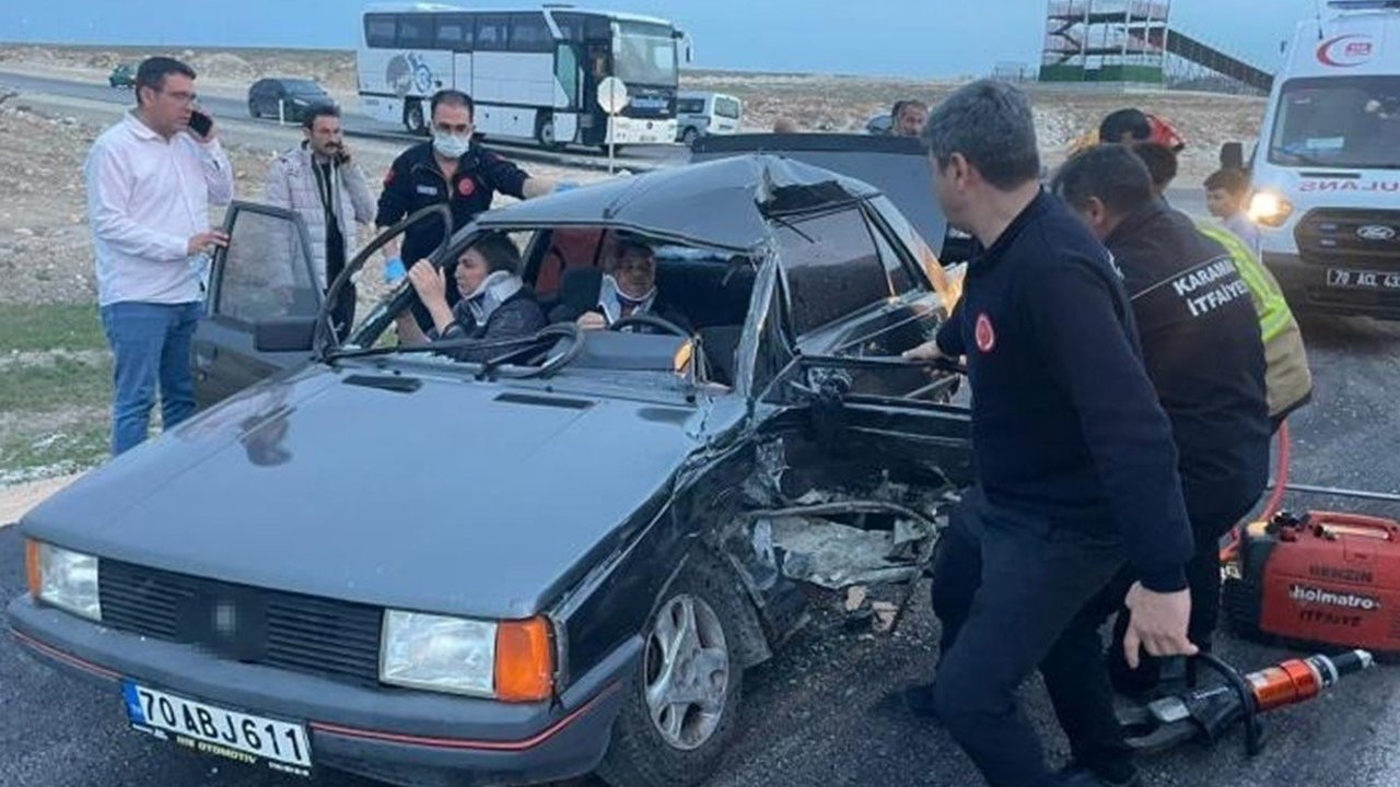 Kaza, akşam saatlerinde Hamidiye Mahallesi yeni çevre yolu üzerindeki kavşakta meydana geldi. Edinilen bilgiye göre, Emin Ü. idaresindeki 70 FL 349 plakalı kamyonet ile İsa T. (67) yönetimindeki 70 ABJ 611 plakalı otomobil kavşakta çarpıştı. Kazada otomobil sürücü İsa T. ile yanındaki eşi Gülseren T. (54) araç içerisinde sıkışırken, kamyonette yolcu olarak bulunan bir kişi de yaralandı. İhbar üzerine olay yerine sağlık, itfaiye ve polis ekipleri sevk edildi. Otomobilde sıkışan karı koca, ekiplerin uzun uğraşları sonucu sıkıştıkları yerden kurtarılarak sağlık ekiplerine teslim edildi. Yaralılar, olay yerindeki ilk müdahalelerinin ardından ambulanslarla Karaman Eğitim ve Araştırma Hastanesi’ne kaldırılarak tedavi altına alındı.