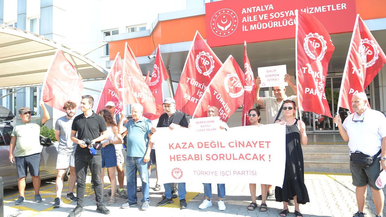 Geçtiğimiz ay Antalya Aile ve Sosyal Hizmetler İl Müdürlüğü’ne bağlı Antalya Çocuk Evleri Sitesi’nde devlet koruması altındaki 6 aylık Arda bebeğin yaşamını yitirmesi üzerine Türkiye İşçi Partisi (TİP) Antalya İl Örgütü Antalya Aile ve sosyal Hizmetler İl Müdürlüğü önünde açıklama yaptı.
