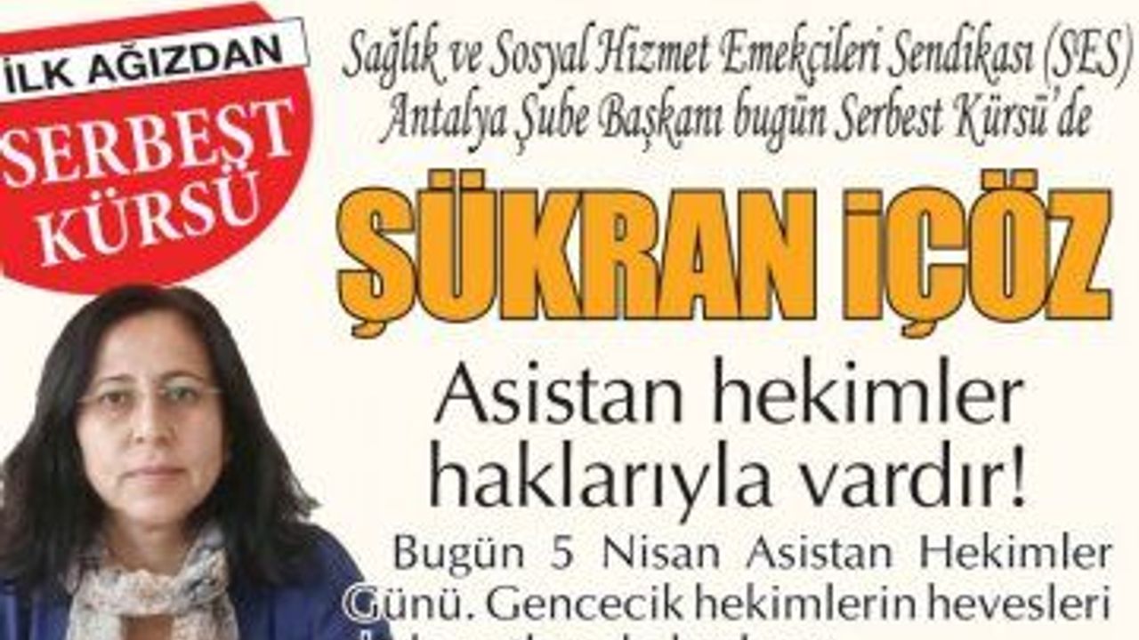 Bugün 5 Nisan Asistan Hekimler Günü. Sağlıkta dönüşümle birlikte kışkırtılan sağlık talebine cevap olmaya çalışırken bir taraftan da yetersiz sayıda bulunan idari personellerin işlerini de sırtlanan, 36 saate varan nöbetlerle kimi kliniklerde ayda 15'e varan nöbet tutan, iki güne bir evlerine sadece uyumaya gidebilen gencecik hekimlerin hevesleri de hayatları da kırılıyor, karartılıyor. İnsani olmayan bu koşullarda maalesef eğitim de olmuyor. Uzmanlık eğitiminde yeterli eğitim alamadan köle gibi çalıştırılan asistan hekimler bu düzene itiraz ettiklerinde ise mobinge uğrama kaygısı taşıyor. Asistan hekimlerin biricik ve vazgeçilmez görevi uzmanlık eğitimidir. Nitelikli uzmanlık eğitimi verilmelidir.