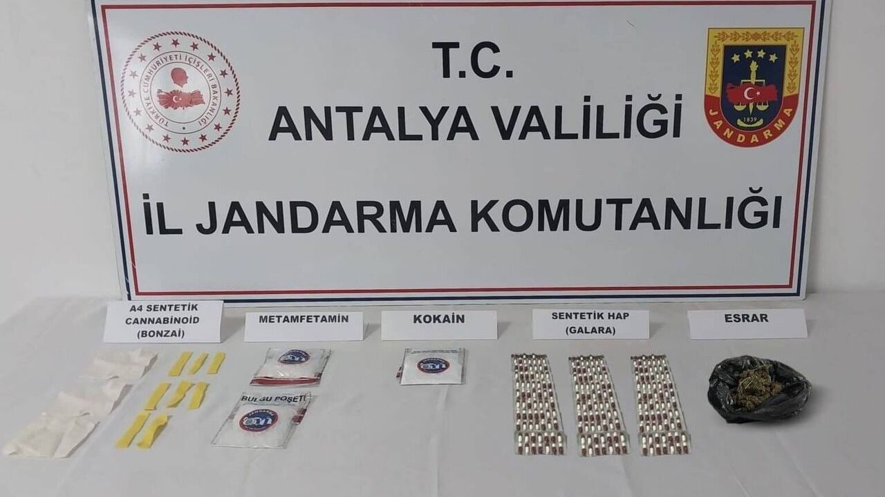 Antalya İl Jandarma Komutanlığı tarafından yürütülen çalışmalar kapsamında, Antalya Cumhuriyet Başsavcılığı talimatıyla Aksu ilçesinde uyuşturucuyla mücadele kapsamında 9 şüphelinin evine eş zamanlı operasyon düzenlendi. Antalya İl Jandarma Komutanlığı Narkotik Şube Müdürlüğü ve Aksu İlçe Jandarma Komutanlığı ekiplerince ikametlerde yapılan aramalarda 225 gram metamfetamin, 43 gram kokain, 210 gram esrar, 420 adet sentetik uyuşturucu hap (Galara) ve 2 bin 850 kullanımlık sentetik kannabinoid ele geçirildi.