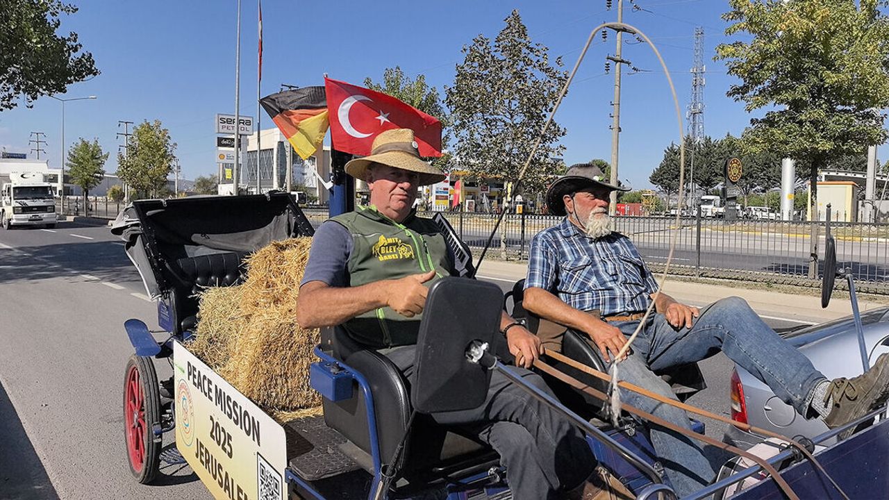 151 gündür yolda olan çiftçiler, üç atın çektiği arabalarıyla Bursa’nın İnegöl ilçesinden geçti. Yol boyunca çeşitli şehirlerde insanlarla buluşan ikili, barış ve dostluk mesajı veriyor. Amaçlarının savaşın acılarını unutturmamak ve dinler arası barışa katkı sağlamak olduğunu belirten Heinz Bley, yaptığı açıklamada şunları söyledi: