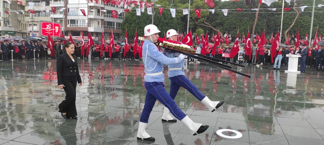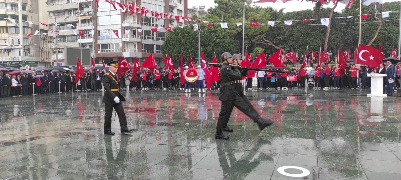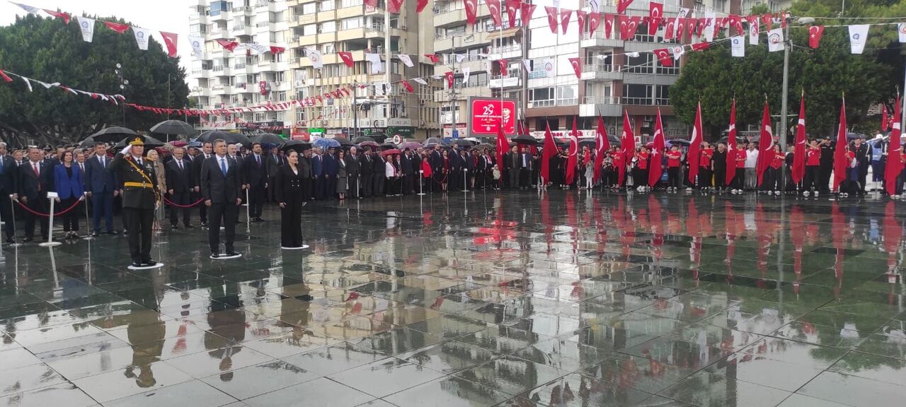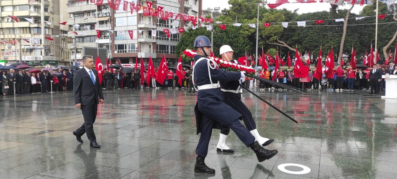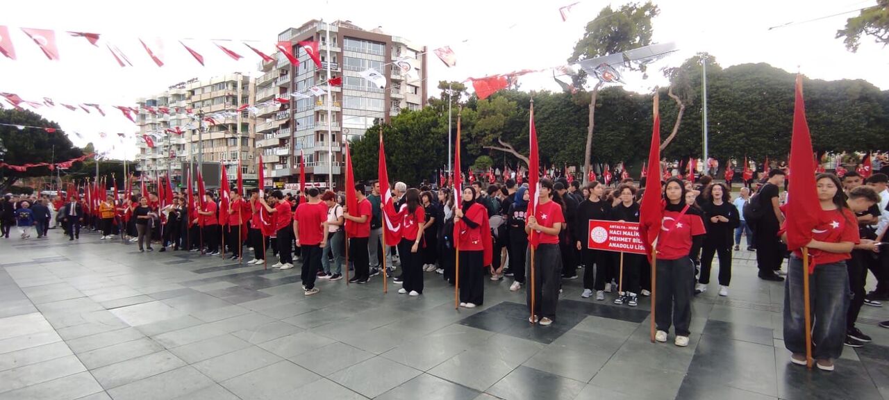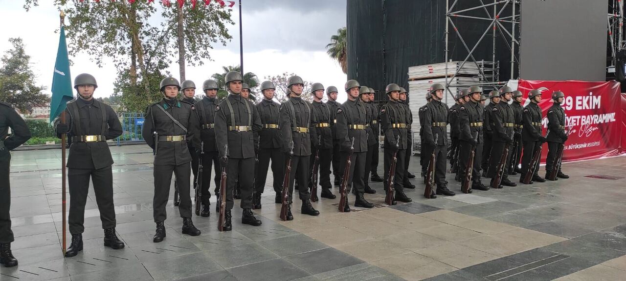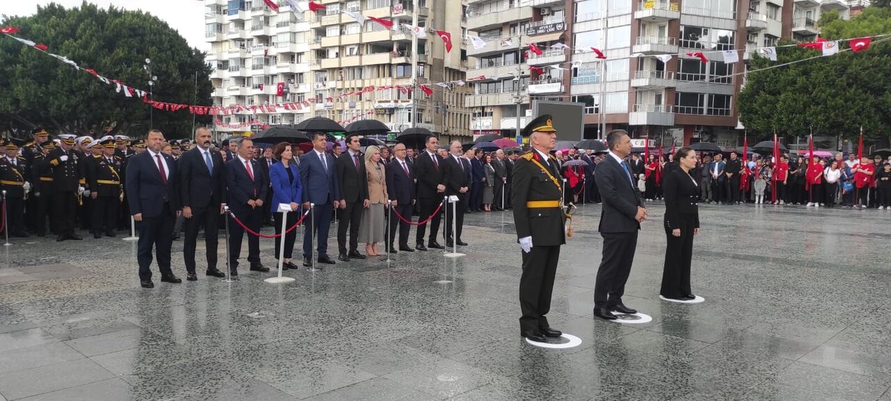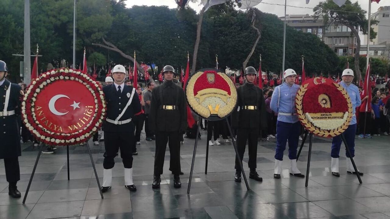 Antalya’da Cumhuriyet’in 102. yılı, yağmurlu havaya rağmen görkemli bir çelenk sunma töreniyle başladı. Cumhuriyet Meydanı’nda düzenlenen törene valilik, garnizon komutanlığı ve büyükşehir belediyesi çelenkleri Atatürk Anıtı’na bırakıldı. Tören, saygı duruşu ve İstiklal Marşı’nın okunmasıyla devam etti. Programın ardından siyasi partiler ve sivil toplum örgütleri de anıta çelenk sunumu gerçekleştirdi.