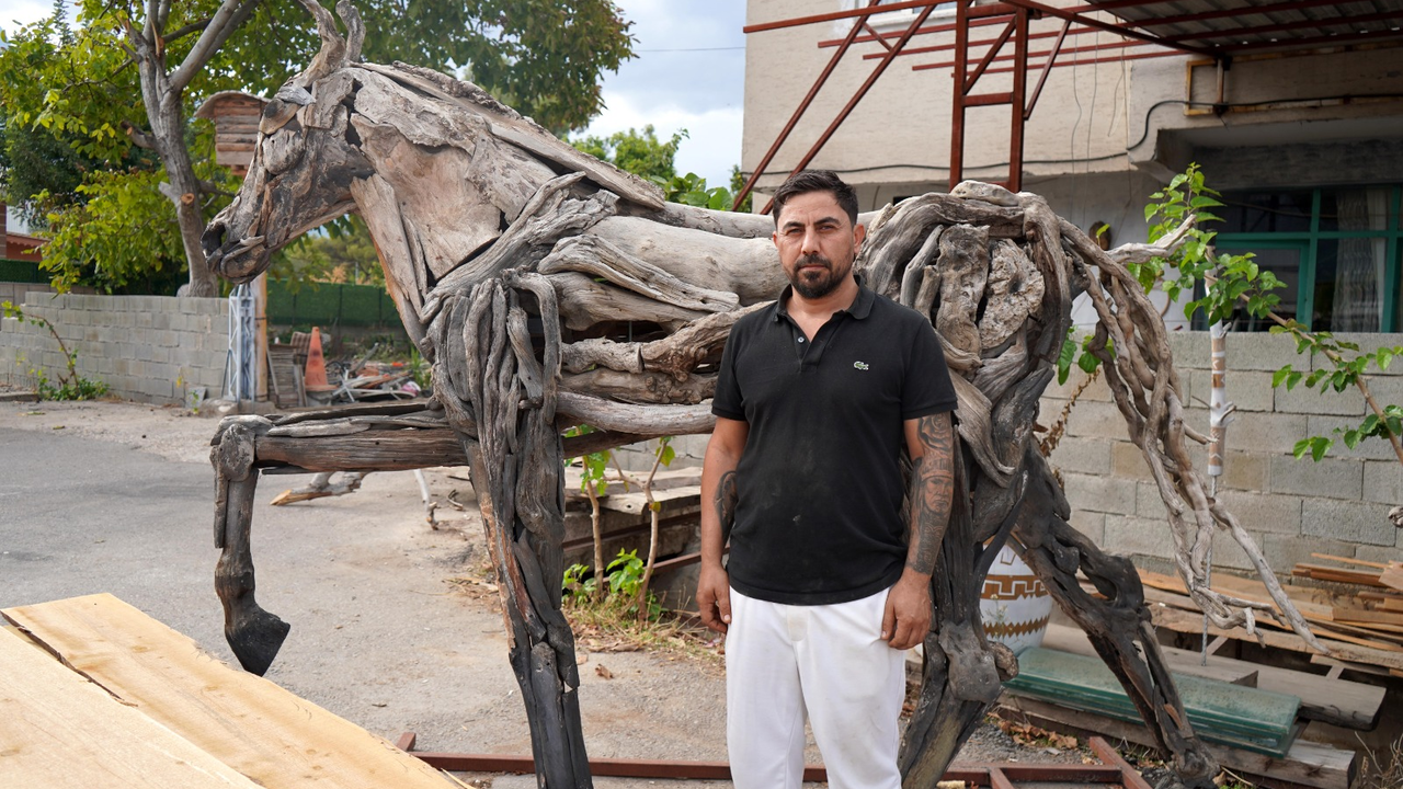 Kentte yaşayan driftwood sanatçısı Osman Dönmez, orman, dağ ve dere yataklarında doğanın kendi döngüsüyle devrilmiş veya dağılmış ağaç parçalarını toplayarak heykeller yapıyor. Doğadan aldığı parçaları yeniden doğaya kazandıran Dönmez, "Doğayı sevdiğim için doğadan ilham alıyorum. Bu malzemeleri birleştirip, hayvan figürlerine dönüştürüyorum" dedi. Atık ağaçlardan yaptığı heykellerin yapım sürecinin uzun ve titiz bir çalışma gerektirdiğini anlatan Dönmez, "Topladığımız parçaları temizleme aşamasından geçiriyoruz, sonra kaide veya iskelet üzerine yerleştirme süreci başlıyor. Günde 3 ila 5 parça üzerinde çalışıyorum. Bir heykelin tamamlanması yaklaşık 1 ayı buluyor" diye konuştu.