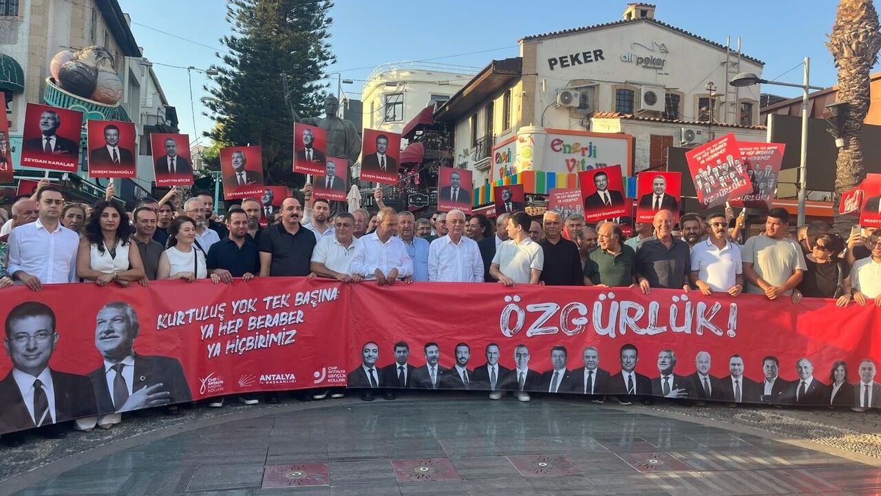 Cumhuriyet Halk Partisi (CHP), tutuklu bulunan belediye başkanlarına destek amacıyla Antalya’da kitlesel bir eylem düzenledi. Attalos Meydanı’nda gerçekleşen buluşmada partinin birlik mesajı öne çıkarken, İl Başkanı Nail Kamacı “Sandıkta kazanamadıklarını kumpasla almaya çalışıyorlar, halk bunun hesabını sandıkta soracak” dedi.