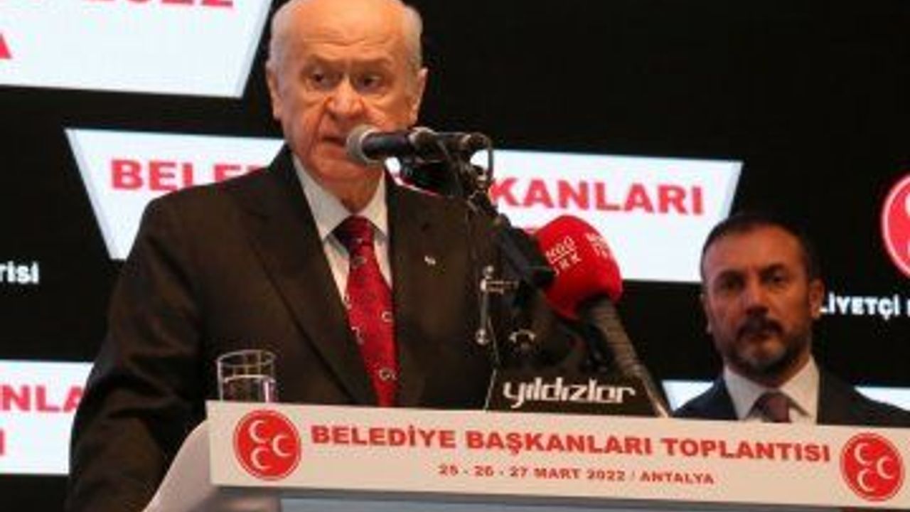MHP Genel Başkanı Devlet Bahçeli, Antalya'da düzenlenen belediye başkanları toplantısında konuştu. Bahçeli, belediye başkanlarına yönelik, 'Belediye yönetimi milletimizin emanetidir. Emanete leke sürmek bizim kitabımızda yazmayacak bir yozlaşma halidir. Bizim belediye başkanlarımız şehirleri, beldeleri kara kışla mücadele ederken balık yemeyi aklından geçirmez. Bizim belediye başkanlarımız arasından şehirlerinde deprem yıkımı yaşanmışken tatile giderek kayak yapacak izansız yüzler çıkmaz' dedi.