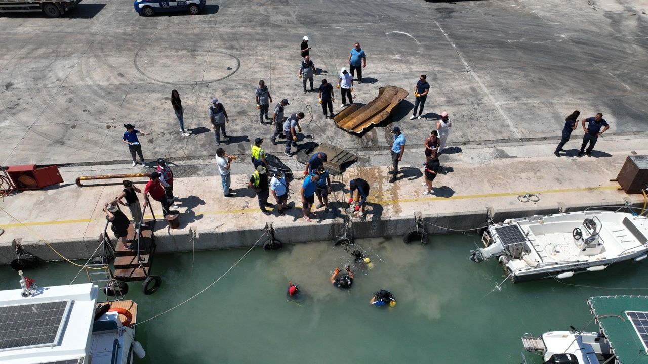 Antalya Büyükşehir Belediyesi öncülüğünde Konyaaltı Belediyesi, Antalya Konyaaltı Su Sporları Kulübü ve Q Terminals iş birliğinde Antalya'nın farklı noktalarında gerçekleştirilen deniz dip temizliği etkinliğinin 5'incisi, balıkçı barınağında yapıldı. İleri seviye profesyonel 32 dalgıcın gerçekleştirdiği dalışta, kısa sürede denizden 2 ton atık çıkarıldı.